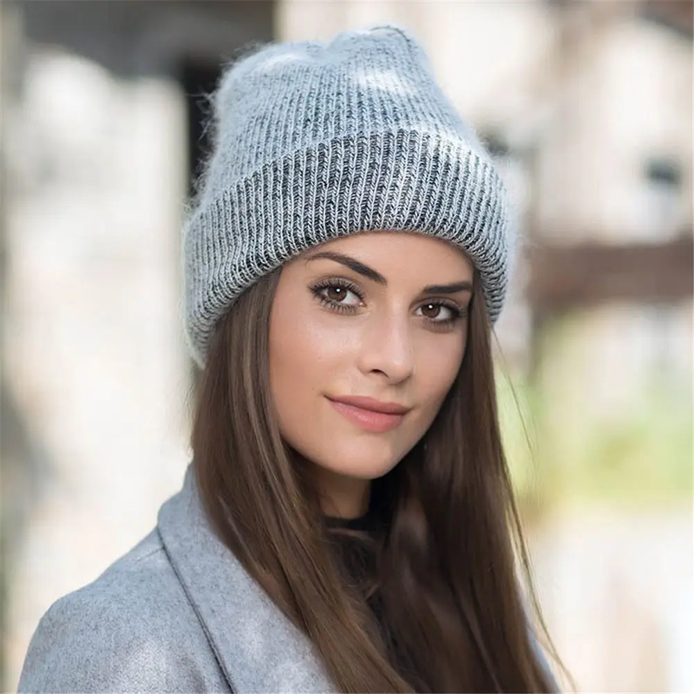 Шапка-бини женская зимняя из кроличьего меха, однотонная
