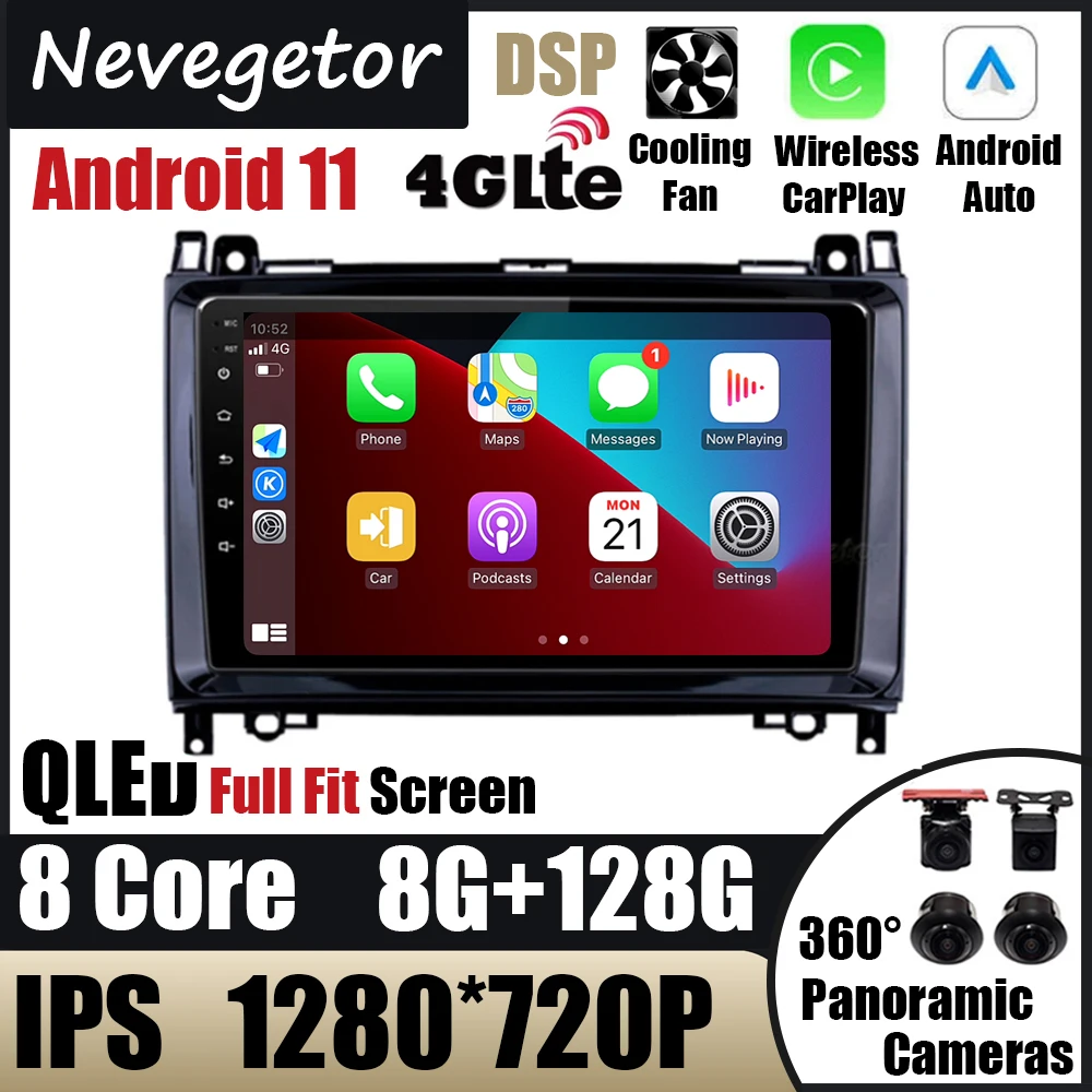 Автомобильная магнитола 9 дюймов Android 11 2 Din для Mercedes Benz B200 Sprinter W906 W639 AB Class W169 W245 Viano Vito радио GPS Navi 4 Гб