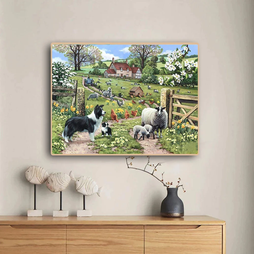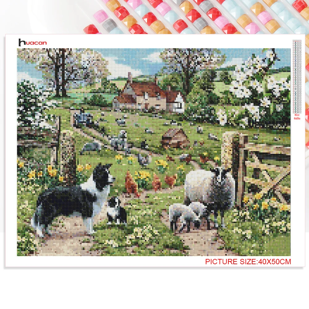 Алмазная живопись Huacan с овечкой и собакой 5D, ферма, Алмазная мозаика, вышивка с животными, картина стразы, украшение для дома