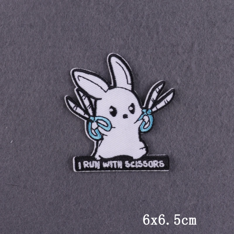 Нашивка с ножом в виде животного, нашивки для утюга на одежду, вышивка Кроликом, нашивки для одежды, полосатый значок, нашивка с лягушкой для одежды