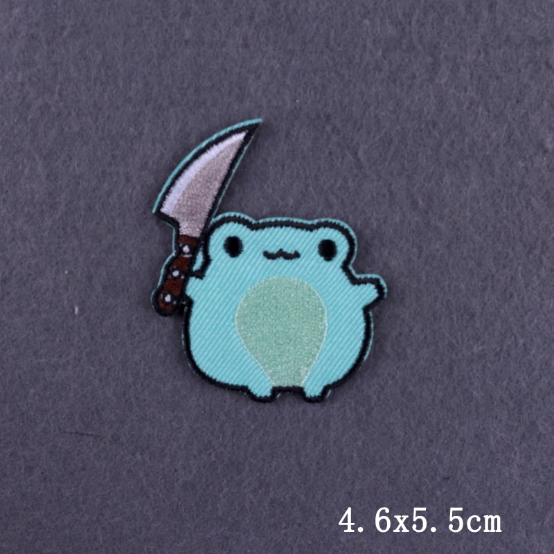 Нашивка в виде животного с ножом, утюжок на нашивках на одежде, нашивки с вышивкой кролика для одежды, нашивки в полоску, нашивки в виде лягушки для одежды
