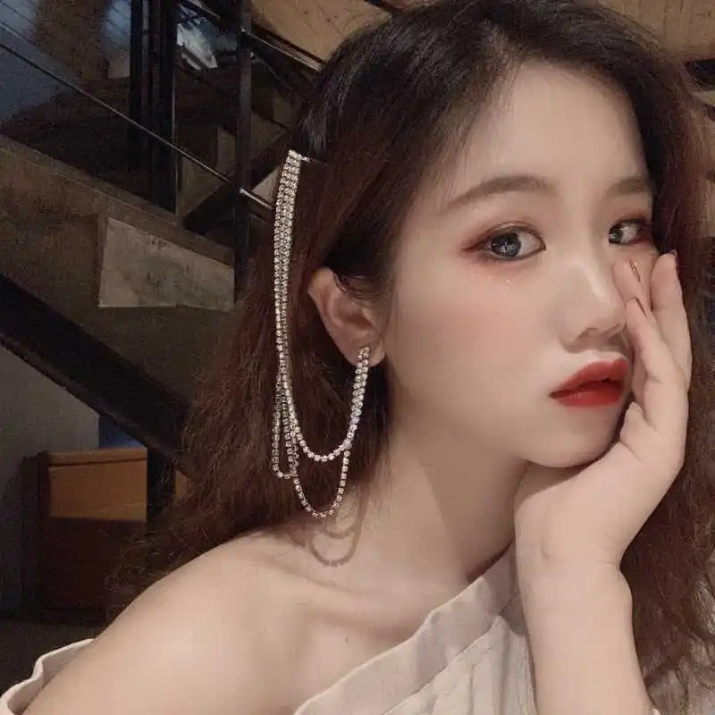 Корейские серьги для девочек, мода 2021, новый стиль с одинаковой индивидуальностью, цепочка, Шпилька для волос, цепочка, длинные кисточки, нишевые жемчужные серьги
