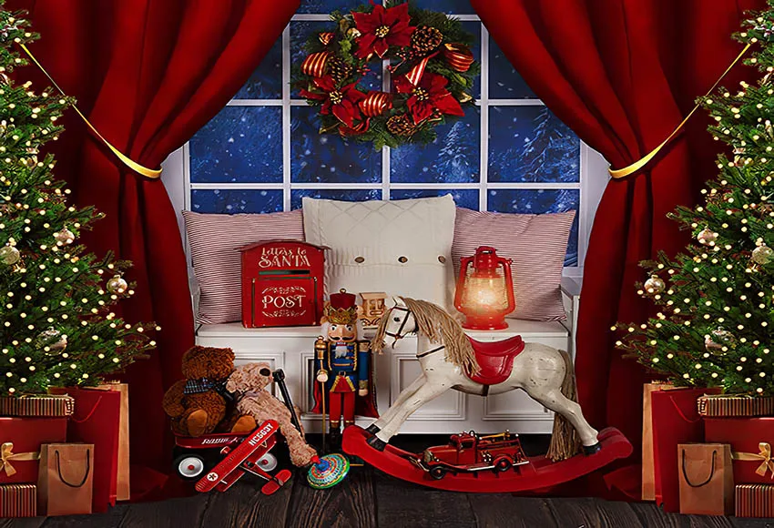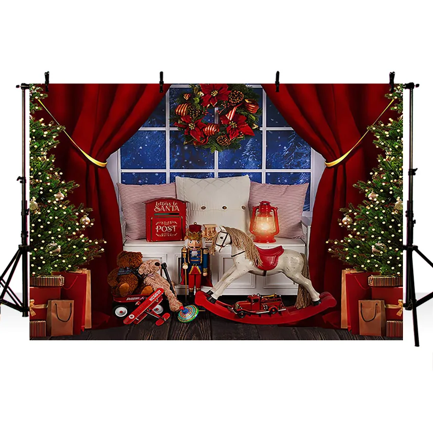 Avezano фотография задний фон Рождественская елка Weath красный занавес медведь зимняя семейная Вечеринка фотостудия фотозона