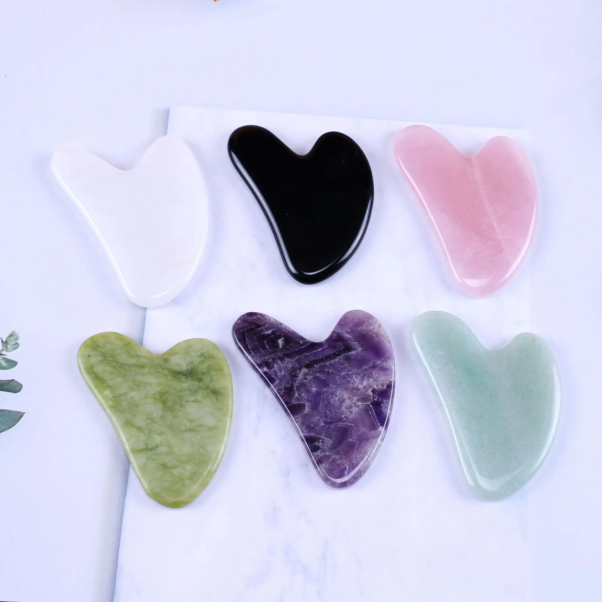 Новый нефритовый тонкий массажер гуаша в форме сердца, 6 цветов, скребок гуаша, розовый, фиолетовый, Нефритовый