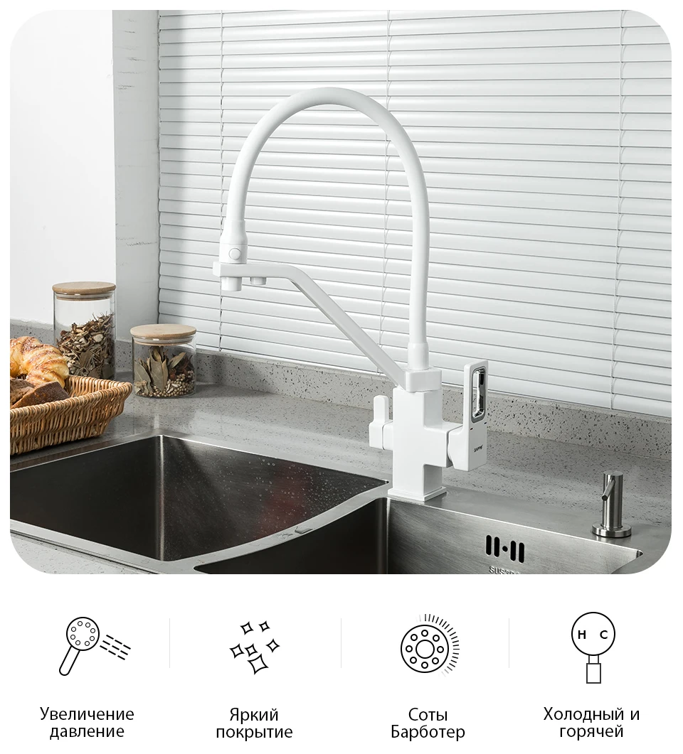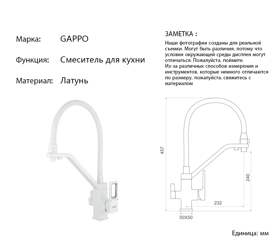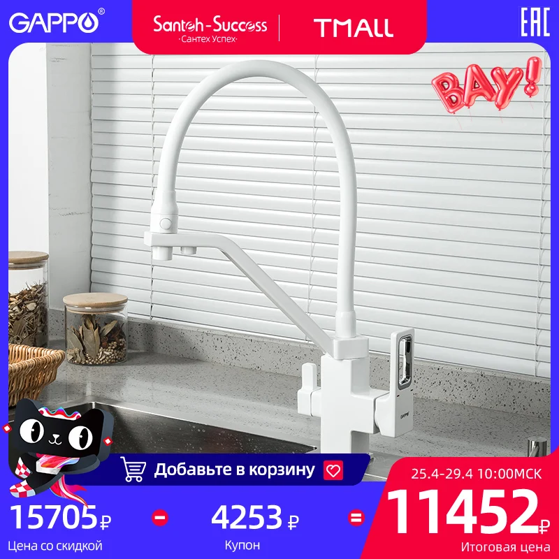 Кухонный Смеситель Gappo, белый кран с фильтром для питьевой воды, двойное управление, для горячей и холодной воды