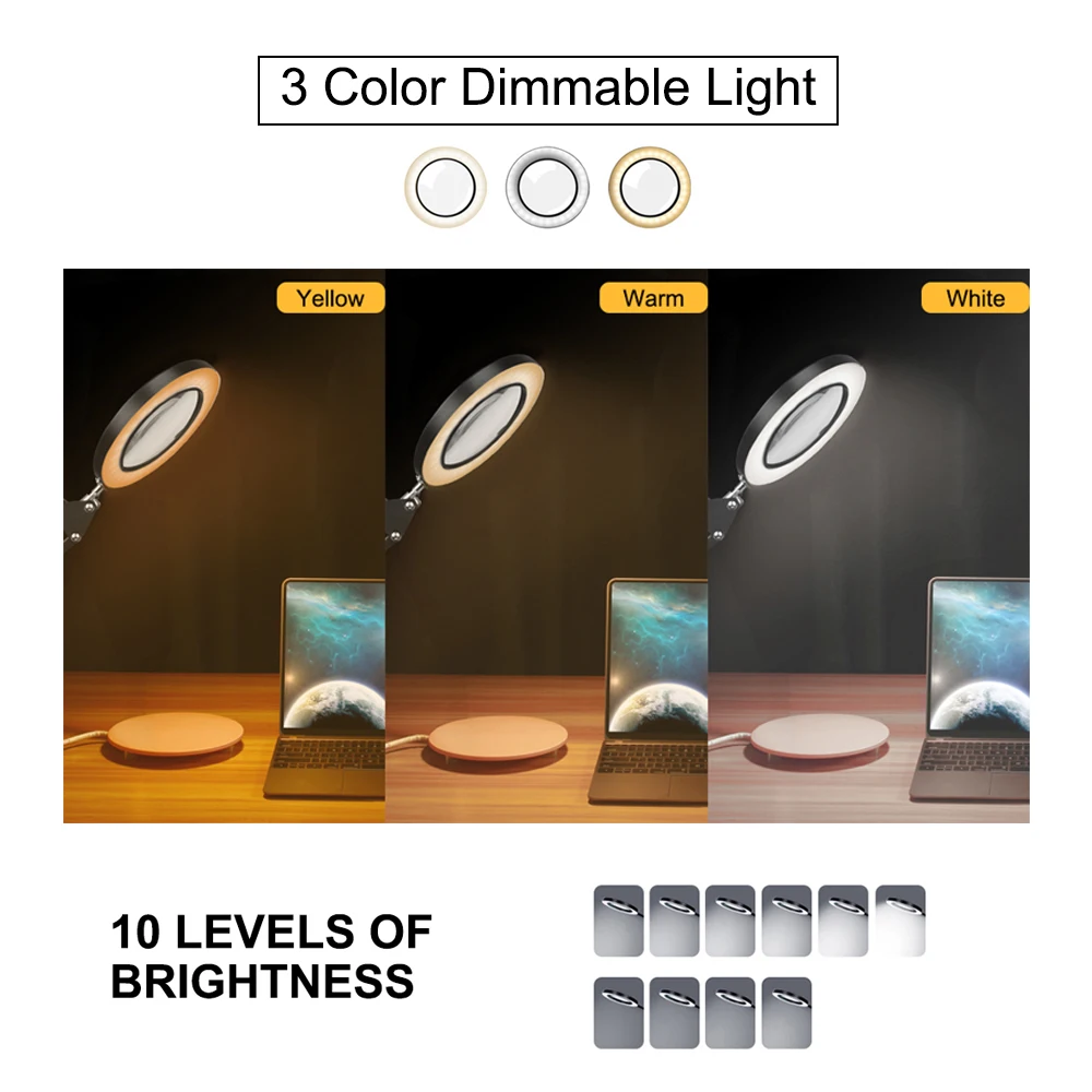 NEWACALOX складной 5X Увеличительное Стекло Настольная лампа 72SMD светодиодный светильник для чтения 3 цветовых режима USB источник питания освещение Лупа