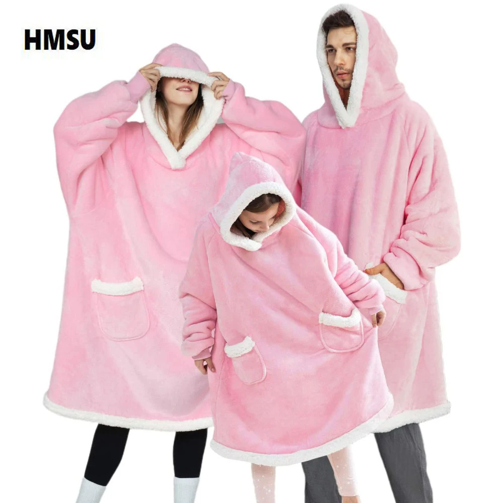 Одеяло HMSU с рукавом для женщин, Толстовка Оверсайз, флисовые теплые толстовки, свитшот, огромное ТВ одеяло, женское худи, халат, женское одеяло