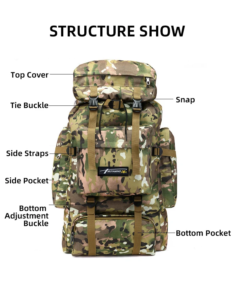 Водонепроницаемый Камуфляжный тактический рюкзак 70L, военный армейский рюкзак для походов, кемпинга, дорожный рюкзак, уличная спортивная сумка для альпинизма