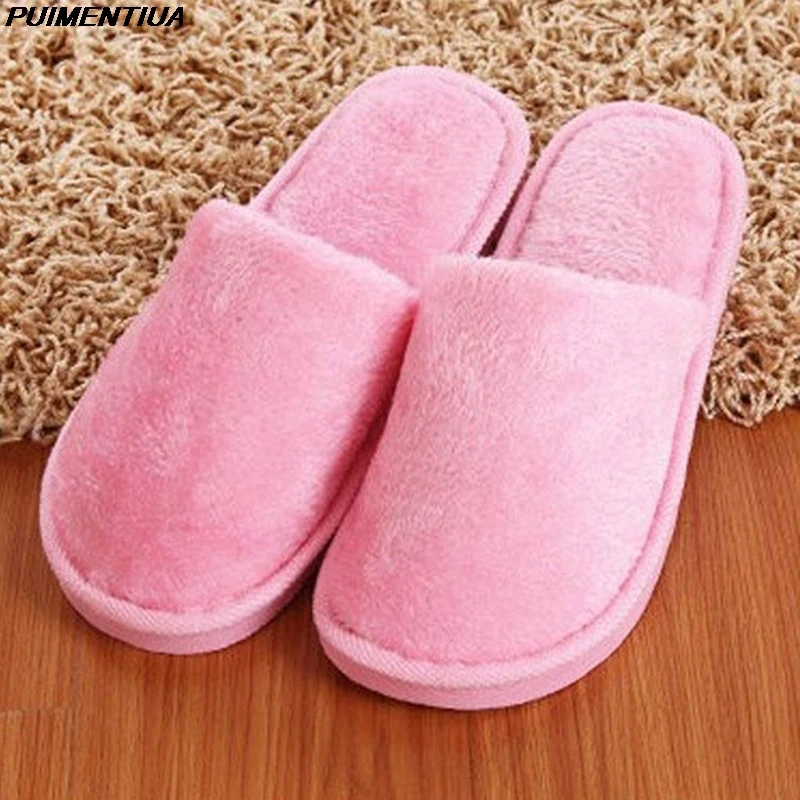 Простые однотонные Мягкие плюшевые тапочки для мужчин и женщин, зимние теплые комнатные Нескользящие тапочки, мужская обувь на плоской подошве для женщин, обувь 2021