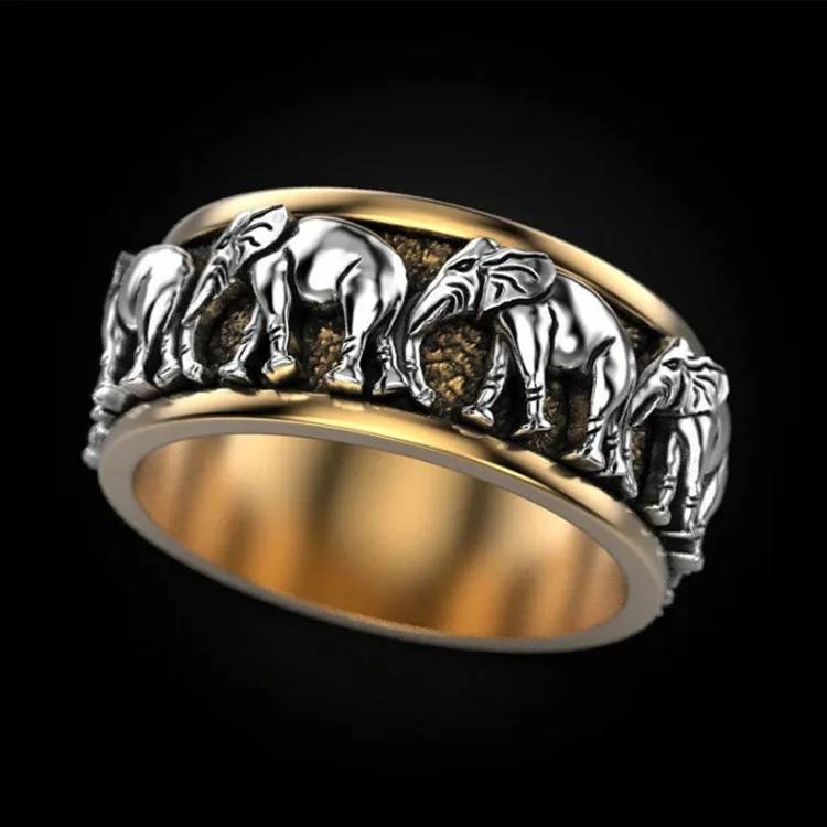 Кольца Mifeiya в стиле панк для мужчин и женщин, золотистые двухцветные кольца со слоном, с символом благоприятности, ювелирные изделия для женщин и мужчин
