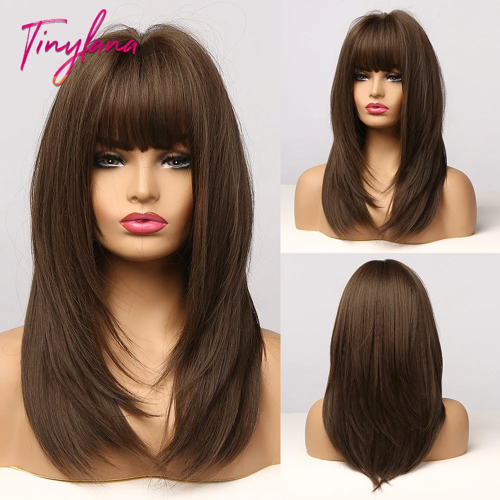 Парики женские длинные прямые с челкой, из термостойкого волокна
