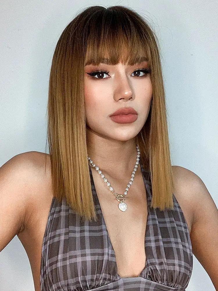 Миниатюрные Синтетические длинные прямые волосы Лана с челкой Омбре...