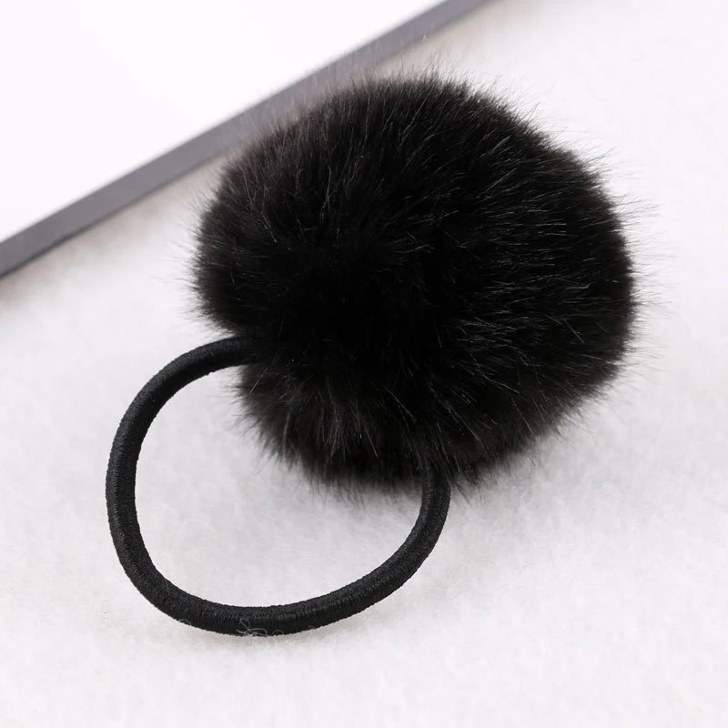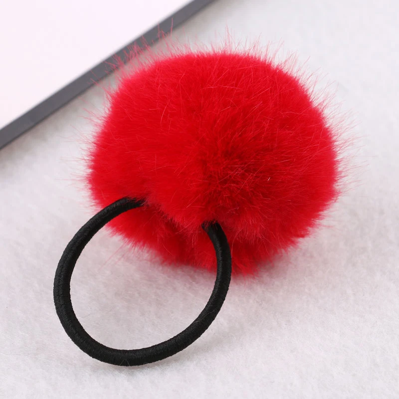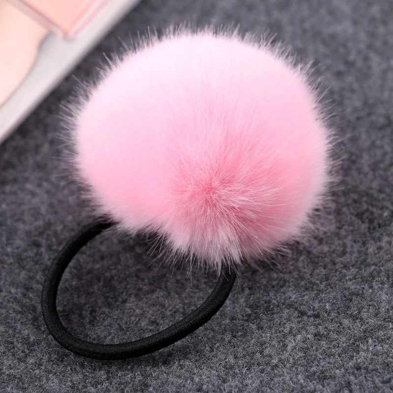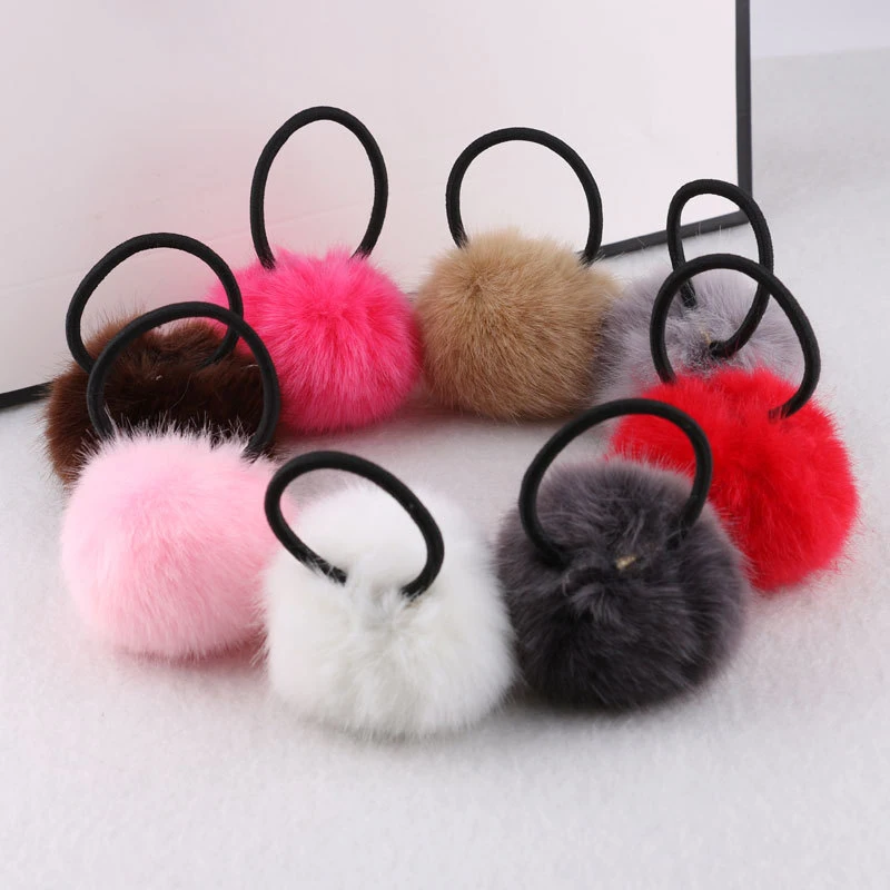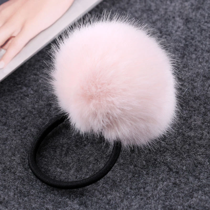 Резинка для волос с помпоном женская, милый плюшевый обруч с кроличьим мехом, украшение для прически конский хвост, эластичная повязка на голову