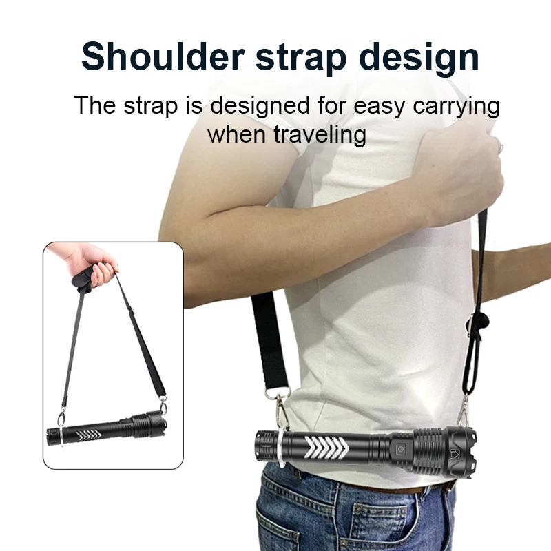 О XHP199※Мы обращаем внимание на качество и обновление продукции. Предоставление клиентам новейших и высококачественных продуктов-это наш принцип обслуживания. Таким образом, мы разработали XHP199 16-сердечник фитиль для этот фонарик с собой, куда бы вы. Это самый мощный и Яркий фитиль в AliExpress. С использованием 2*18650 или 2*26650 батарей, он используется для 4-10 часов с полной зарядкой, и расстояние освещения более 1500 метров. 5 режимов, подходит для охраны, кемпинга, патрулирования, охоты и т. д. это также хороший помощник для домашнего освещения и путешествий. Мы дадим вам тактическую веревку 120 см для покупки XHP199.