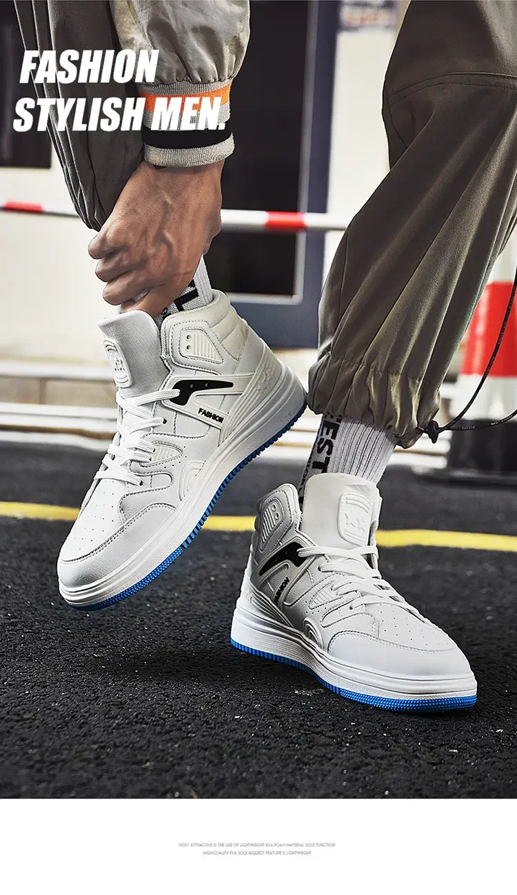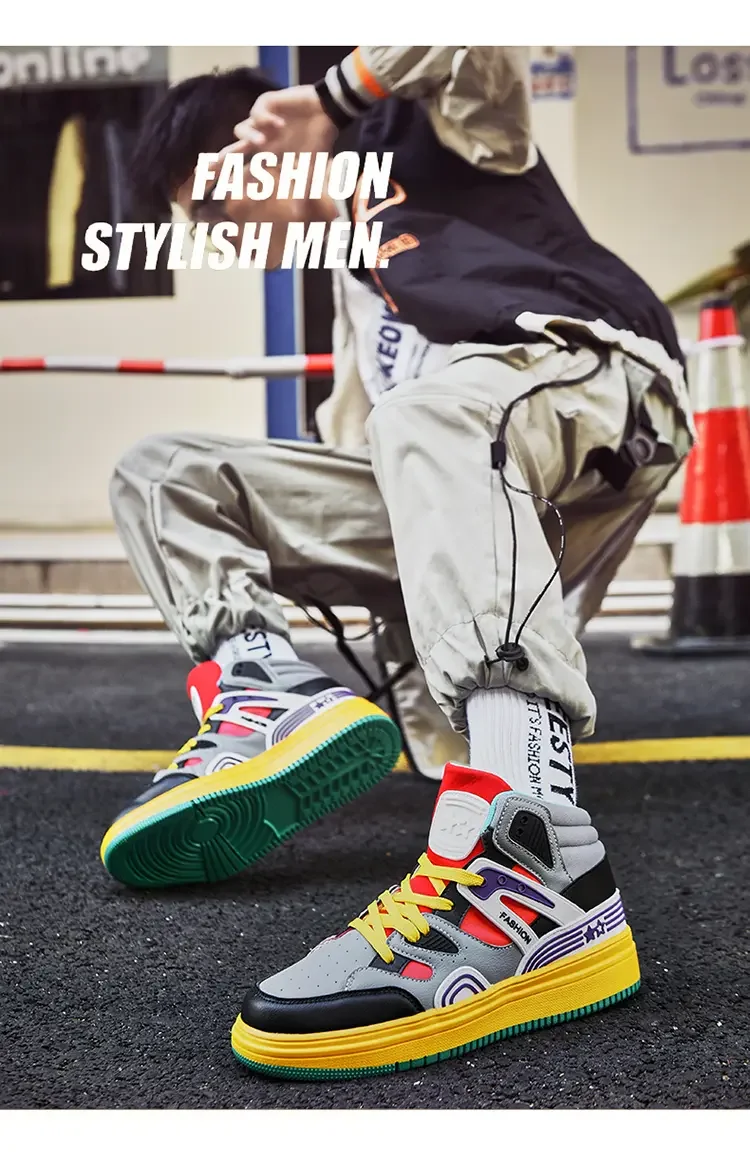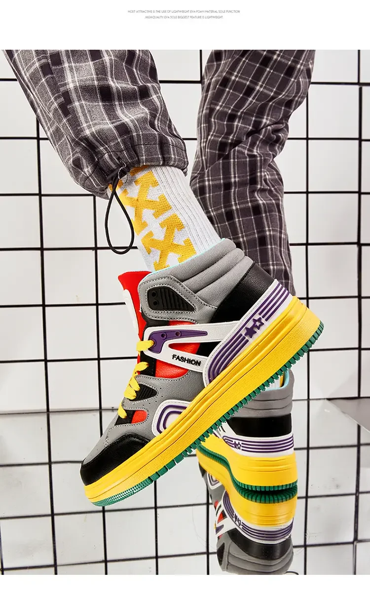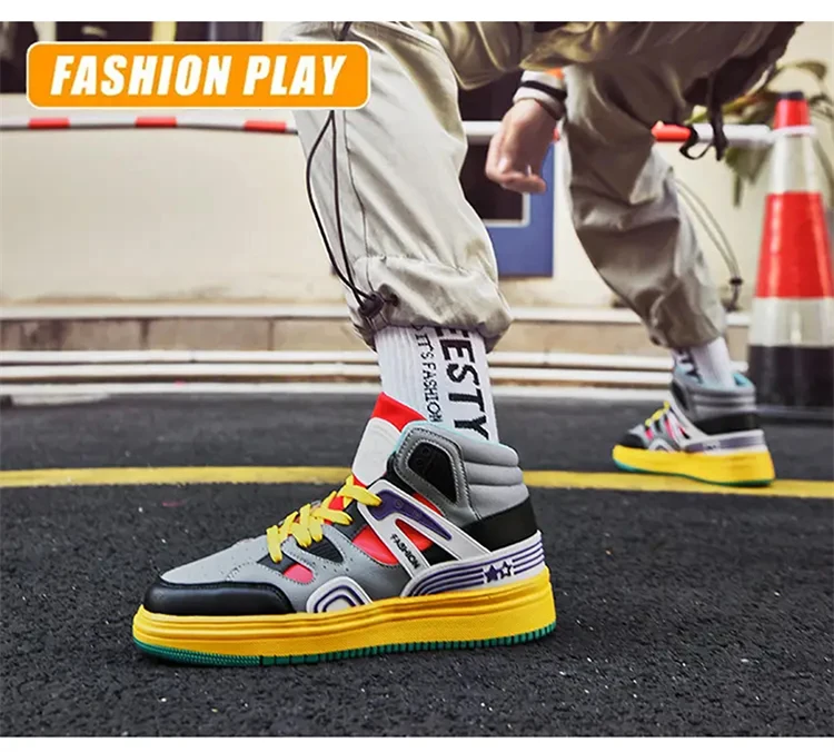 Весенние модные мужские кроссовки с высоким верхом и желтой подошво...