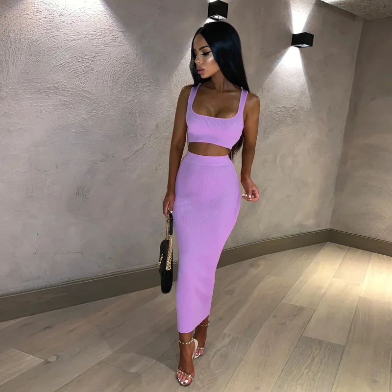 Женский трикотажный комплект HAASKEW в рубчик из двух предметов, укороченный топ с длинной юбкой, сексуальная элегантная Праздничная подходящая одежда, лето 2021