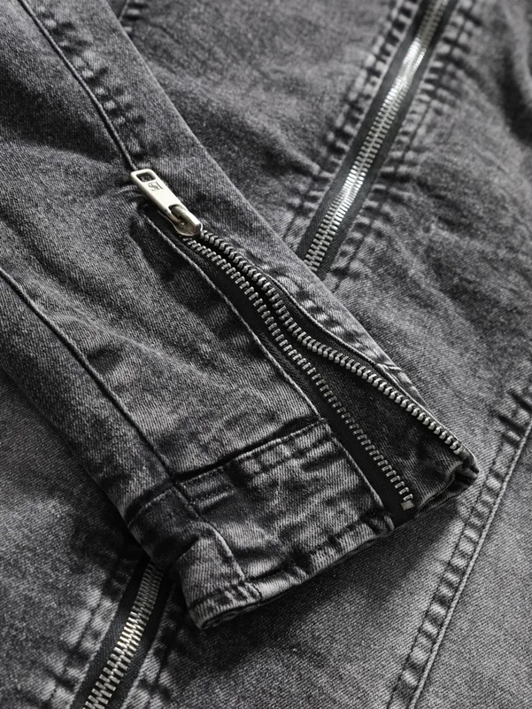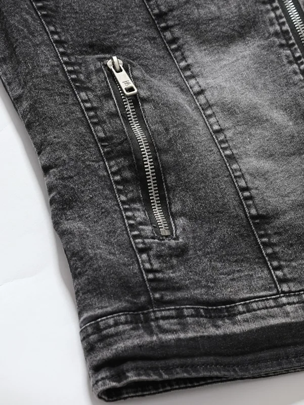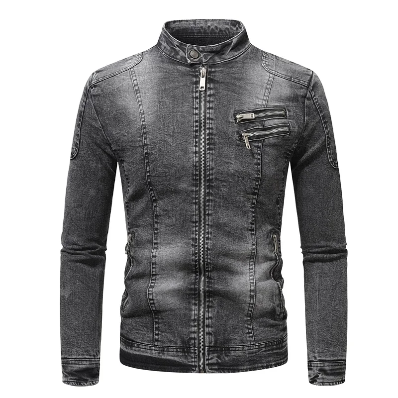 Мужская джинсовая куртка на молнии, однотонная приталенная мотоциклетная флисовая куртка с воротником-стойкой и карманами, Осень-зима 2021