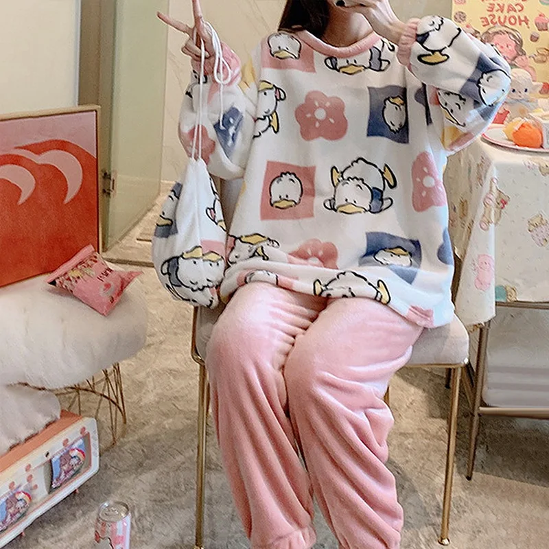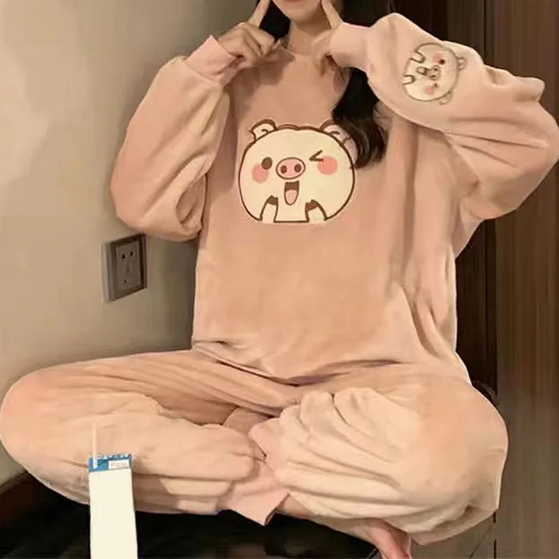 Зимний пижамный комплект, женские брючные костюмы, комплект из 2 предметов, Женская флисовая Пижама, одежда для сна, плотная Теплая Бархатная женская ночная рубашка, костюм, пижама
