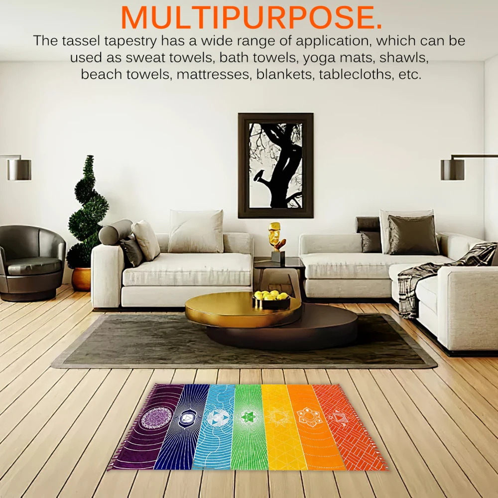 Коврик для медитации, йоги, полотенца, полосатый напольный коврик с кисточками, гобелен, цветной эргономичный портативный напольный коврик с кисточками