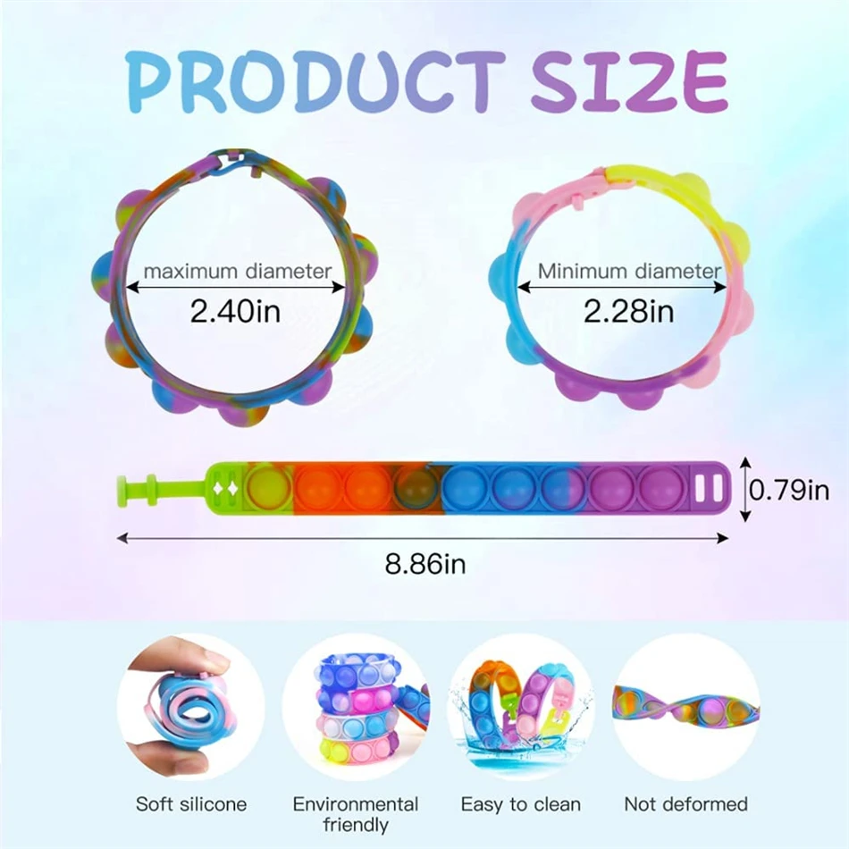 【Quality】: наш сенсорный браслет изготовлен из высококачественного силиконового материала, материал мягкий и легко чистится, не наносит вреда людям и домашним животным, поэтому вам не нужно беспокоиться о безопасности детей.【Fashion Fidget Bracelet】: эта игрушка с нажимным браслетом может использоваться в качестве стильного и крутого браслета, подходит для всех возрастов и любых случаев. Очень подходит для занятий спортом, спортивных залов, вечеринок, командных тренировок, сувениров, офисов, ресторанов и т. д. это отличный модный аксессуар【Идеальный выбор для снятия стресса 】: Напульсник для снятия стресса идеально подходит для снятия стресса. Играя с этими игрушками, они могут успокоить ваш мозг и не допустить стресса и неприятностей. Они подходят для взрослых и детей, страдающих от депрессии и стресса【Портативный идеальный подарок 】: уникальный браслет декомпрессии Непоседа игрушка, новейший дизайн, уникальный. Игрушку можно носить на запястье и играть в любое время и в любом месте. Это идеальный подарок для взрослых и детей с тревогой, аутизмом, СДВГ, СДВГ и другими особыми сенсорными потребностями.【 Послепродажное обслуживание 】: качество во-первых, идеальный опыт покупок для клиента-наша цель, пожалуйста, будьте уверены, чтобы купить. Если у вас есть какие-либо проблемы с товаром, мы поможем вам решить его вовремя. Для нас большая честь узнать о вашем использовании, и мы сделаем наши продукты лучше.