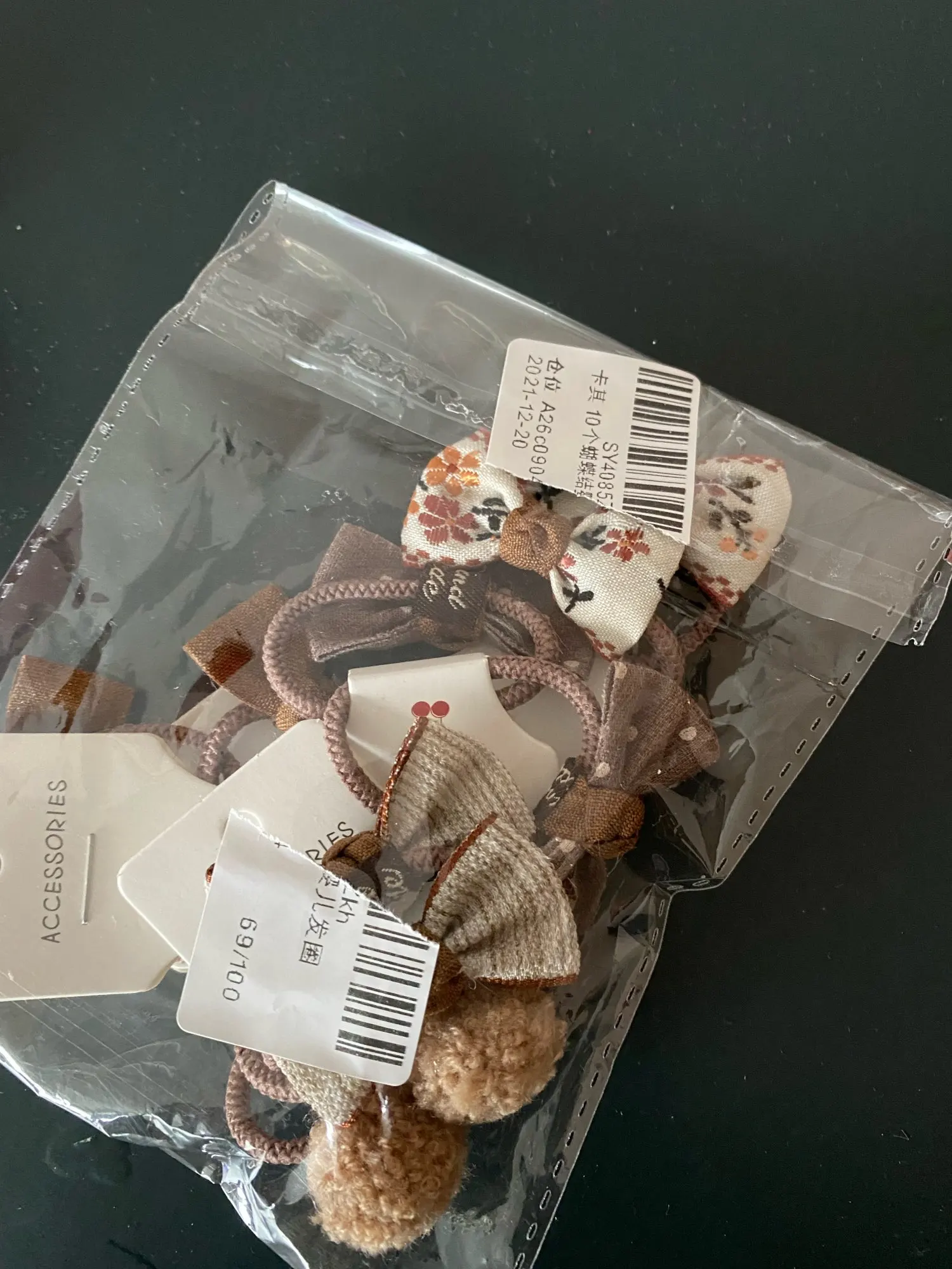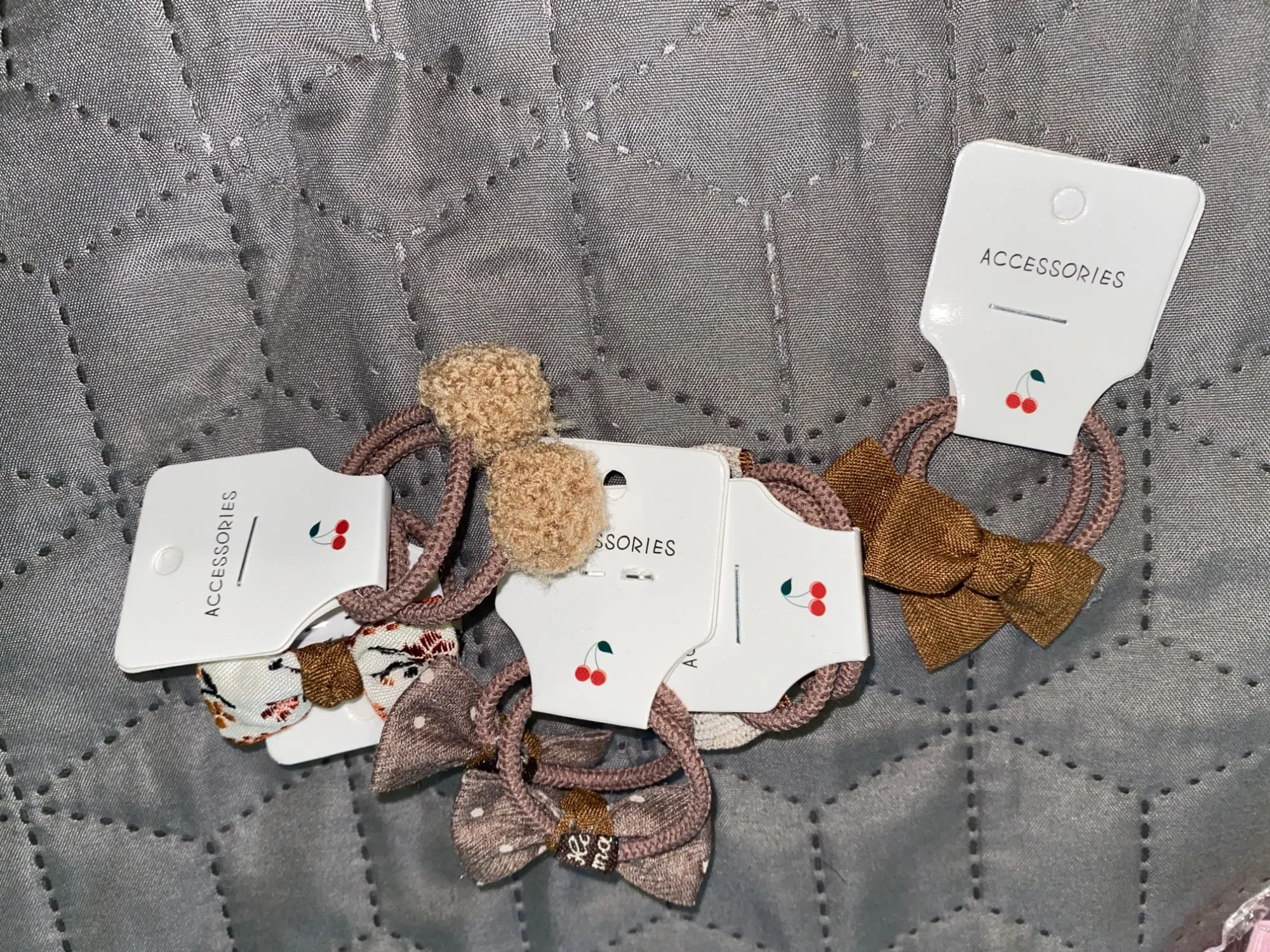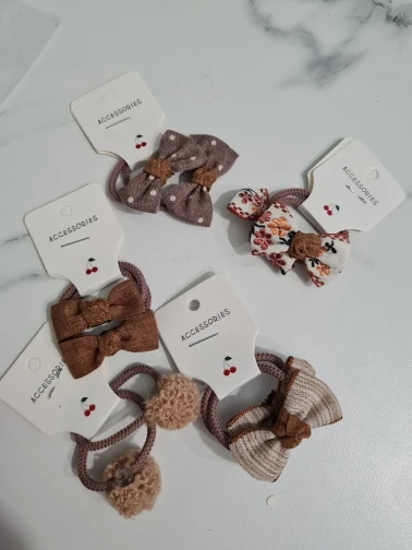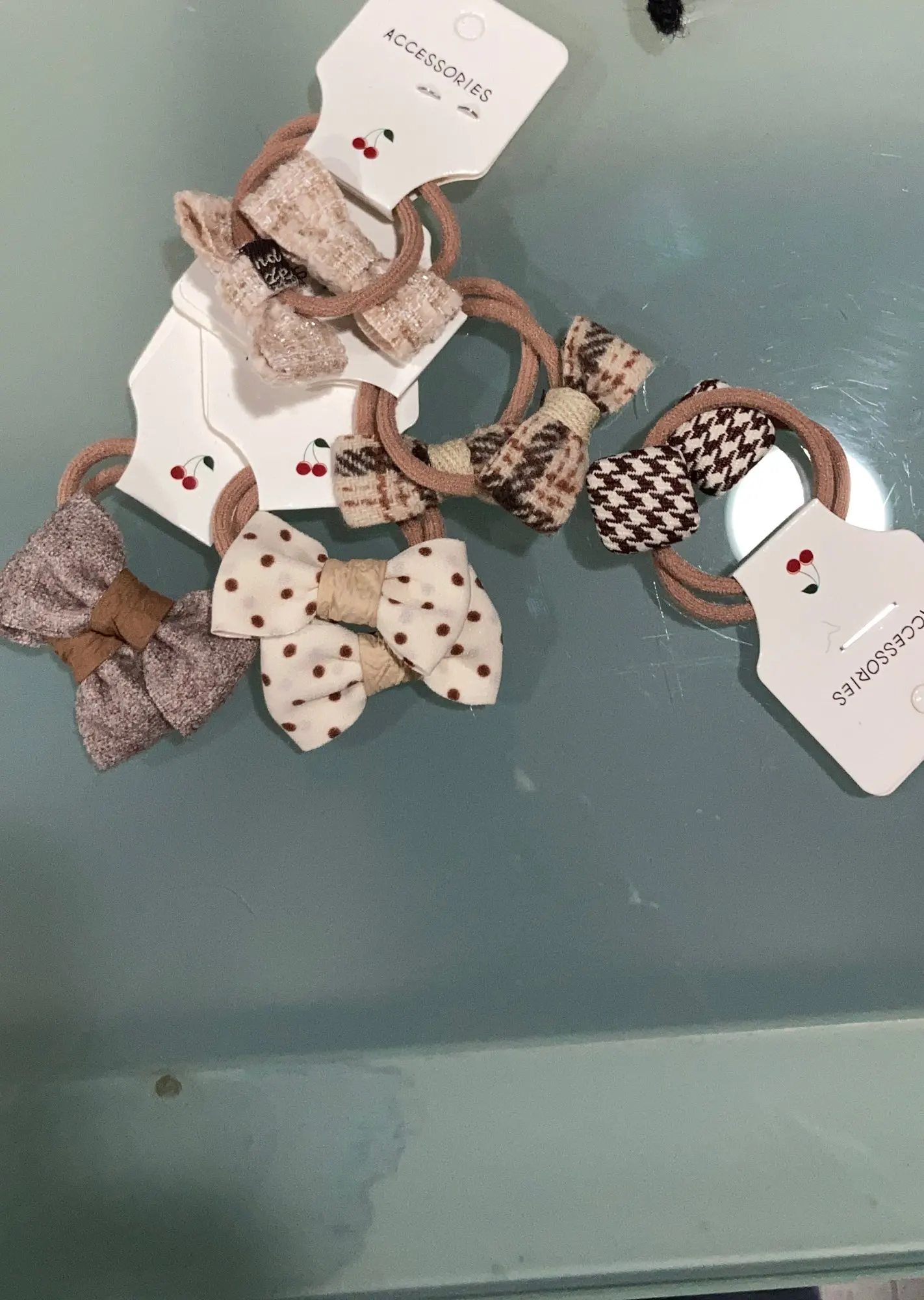 10 gomas preciosas , en tonos marrones, con lazos y pompones. la goma es elástica y sujeta muy bien el pelo, y el diseño es como en la foto, ideal para combinar con looks so cute! volvería a comprarlas sin duda, buscare más del mismo vendedor. recomendable 100%