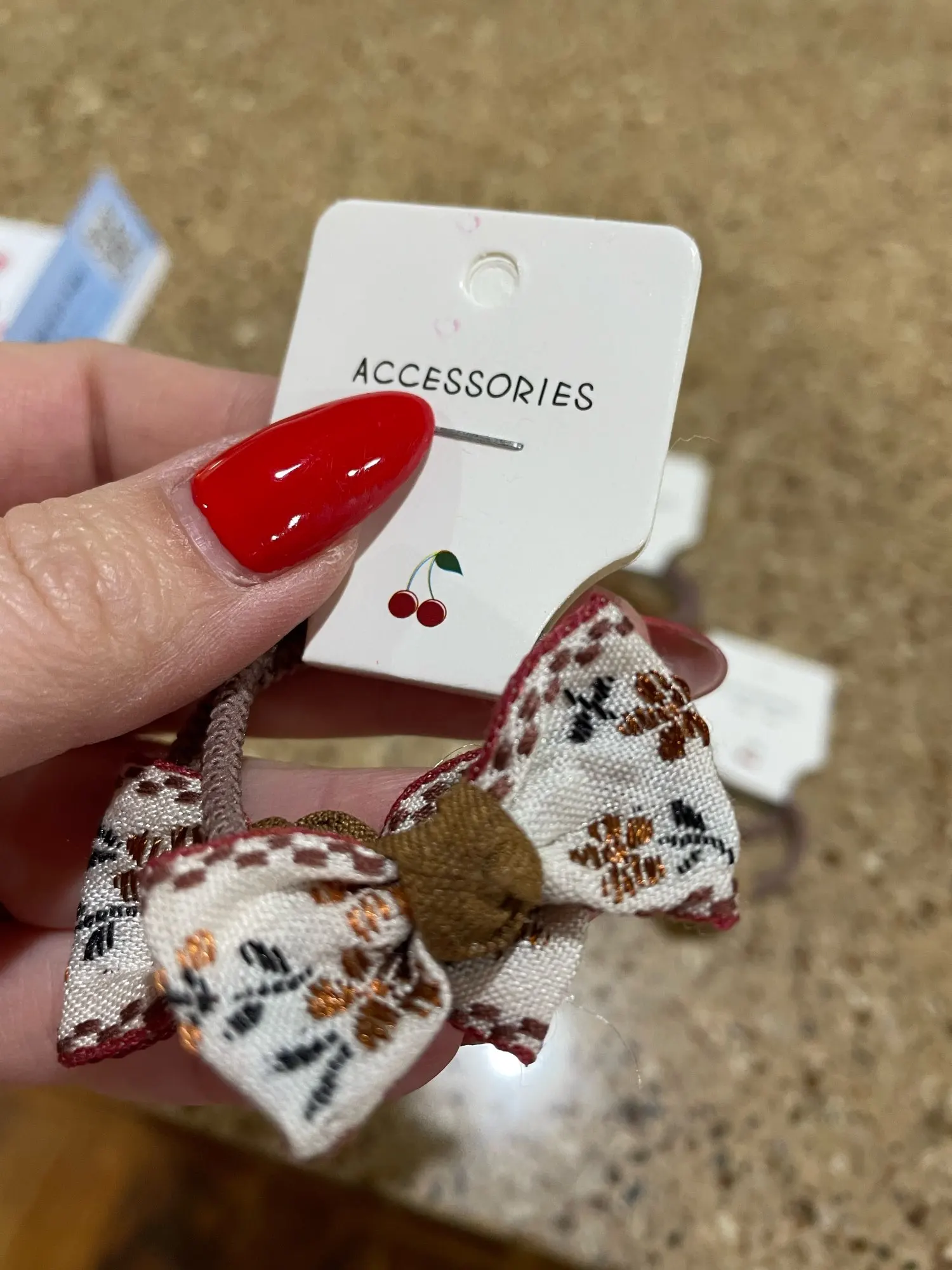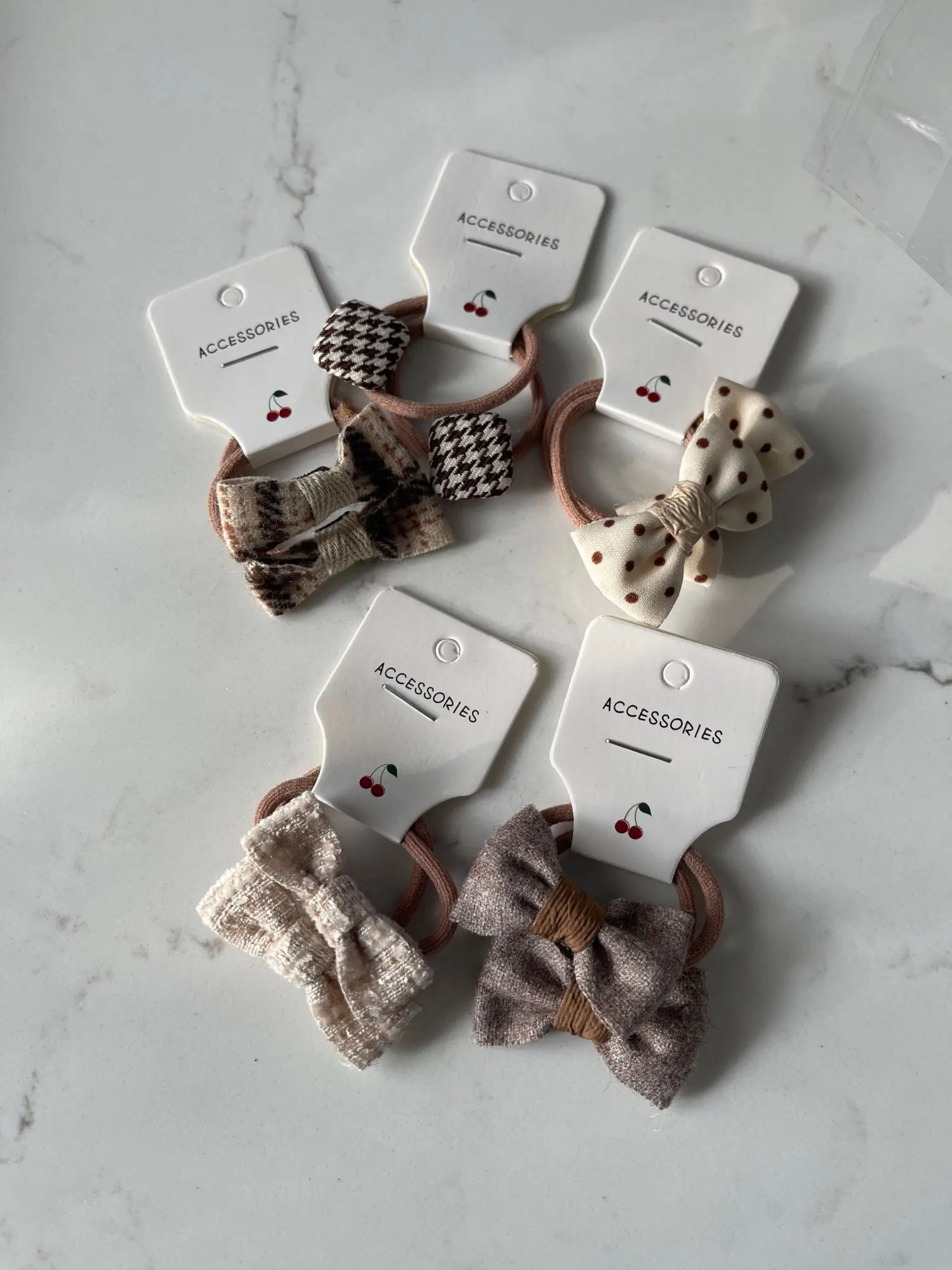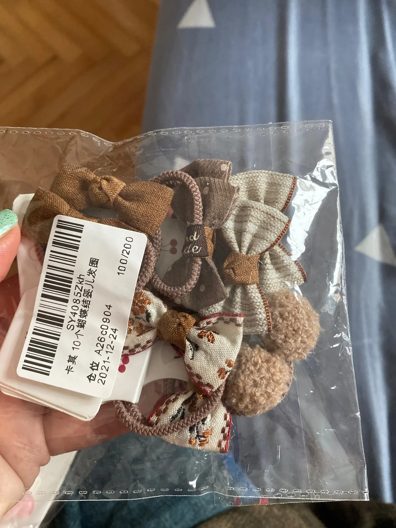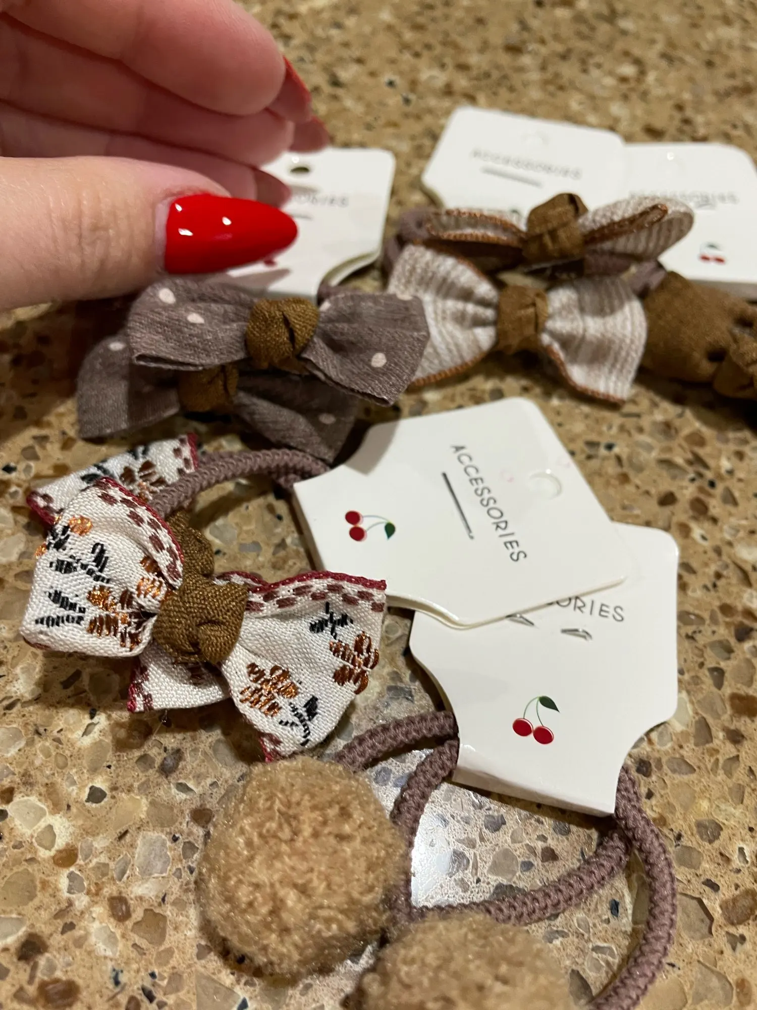 10 gomas preciosas , en tonos marrones, con lazos y pompones. la goma es elástica y sujeta muy bien el pelo, y el diseño es como en la foto, ideal para combinar con looks so cute! volvería a comprarlas sin duda, buscare más del mismo vendedor. recomendable 100%