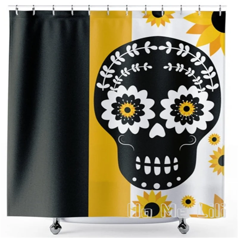 Сахарный Череп Подсолнух черный желтый белый скелет Хэллоуин Декор для ванной комнаты занавеска для душа от Ho Me Lili