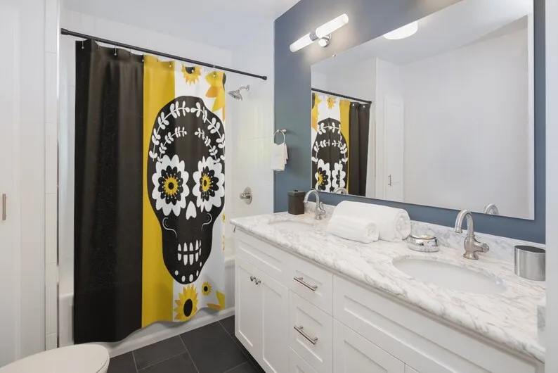 Занавеска для душа из водонепроницаемой ткани с принтом черепа и ко...