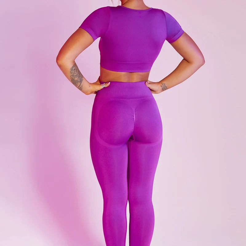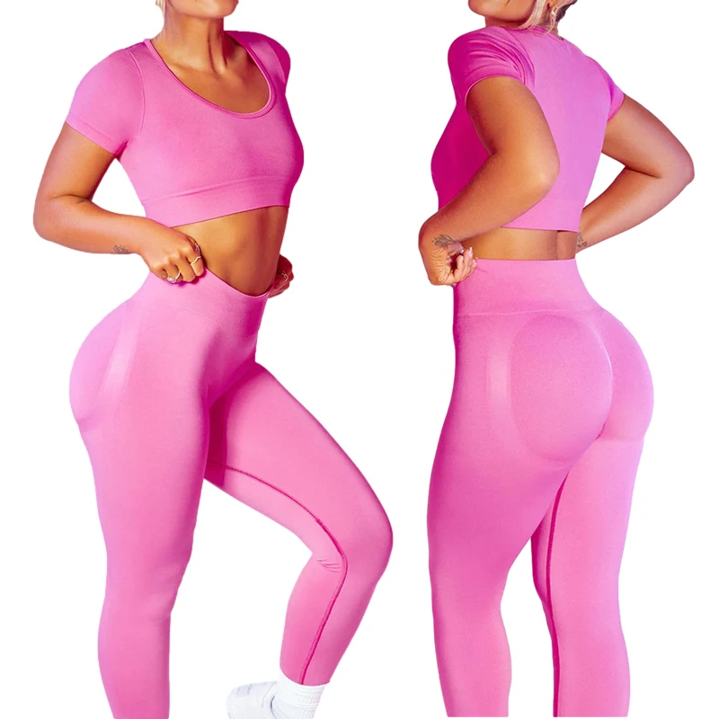 Бесшовный спортивный комплект, женский короткий топ, рубашка, леггинсы, комплект из двух предметов, спортивная одежда для тренировок, фитнеса, костюм для спортзала, женские комплекты для йоги, одежда