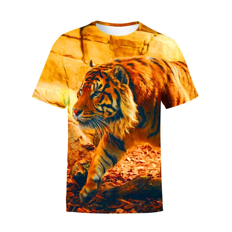 Футболка детская с 3D-принтом тигра, льва и коротким рукавом