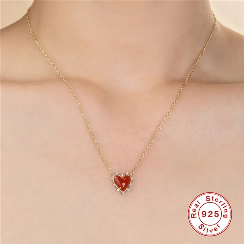 Женское ожерелье из серебра 925 пробы с подвеской в виде сердца