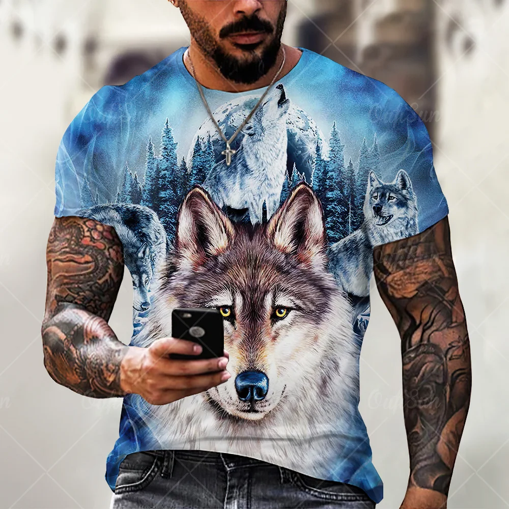 Футболка мужская с коротким рукавом и круглым вырезом, с принтом волка