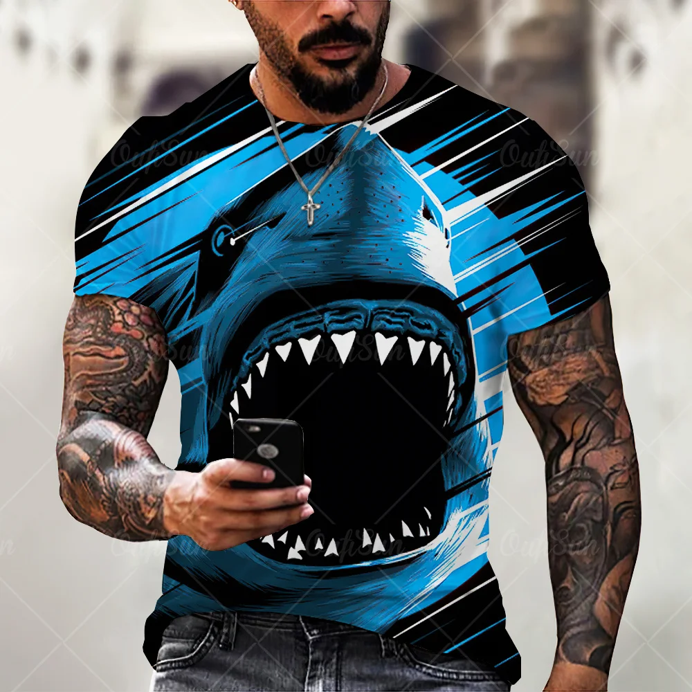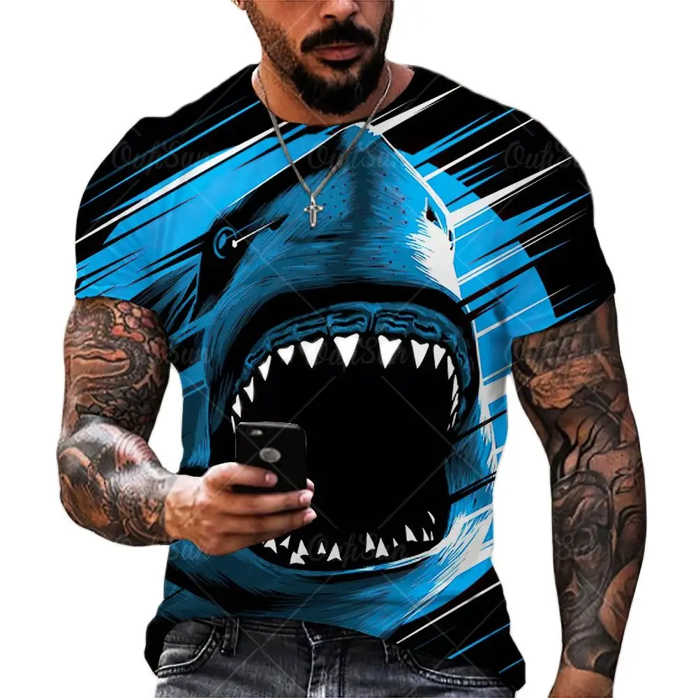 Футболка мужская оверсайз с коротким рукавом, Свирепый тигр, волк, Акула, Модная приталенная, с круглым вырезом, универсальная Удобная