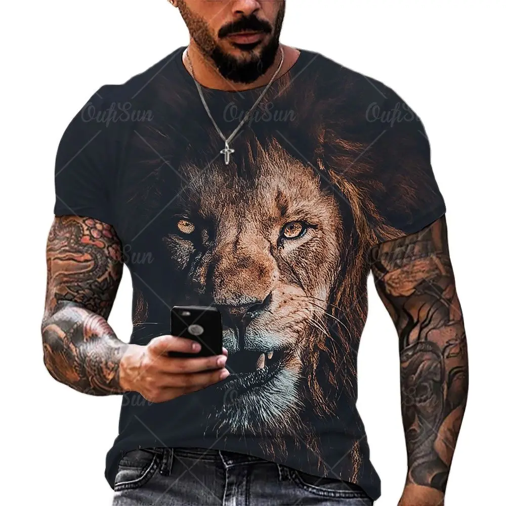 Летняя мужская модная футболка с 3D принтом льва, Повседневный пуло...