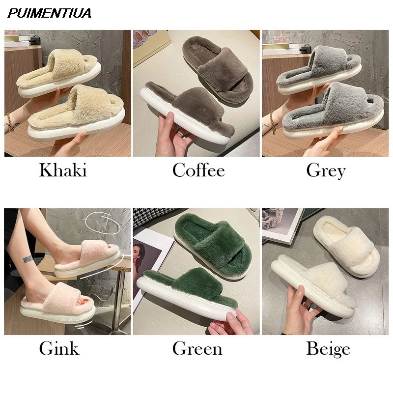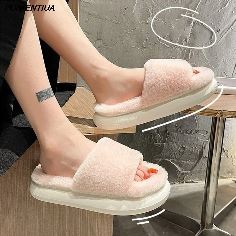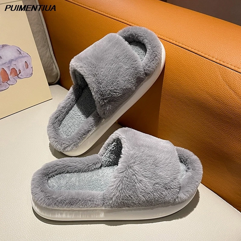 Женские меховые тапочки, зимние Нескользящие домашние тапочки на толстой подошве, мягкая хлопковая обувь, женские меховые сланцы, большие размеры 43