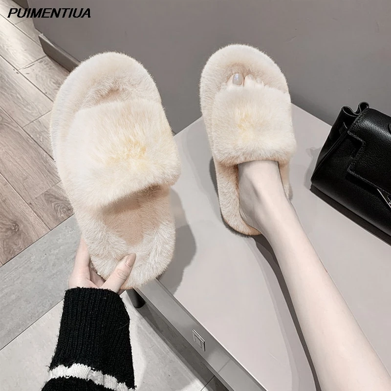 Домашние тапочки из искусственного меха, пушистые женские сланцы, у...