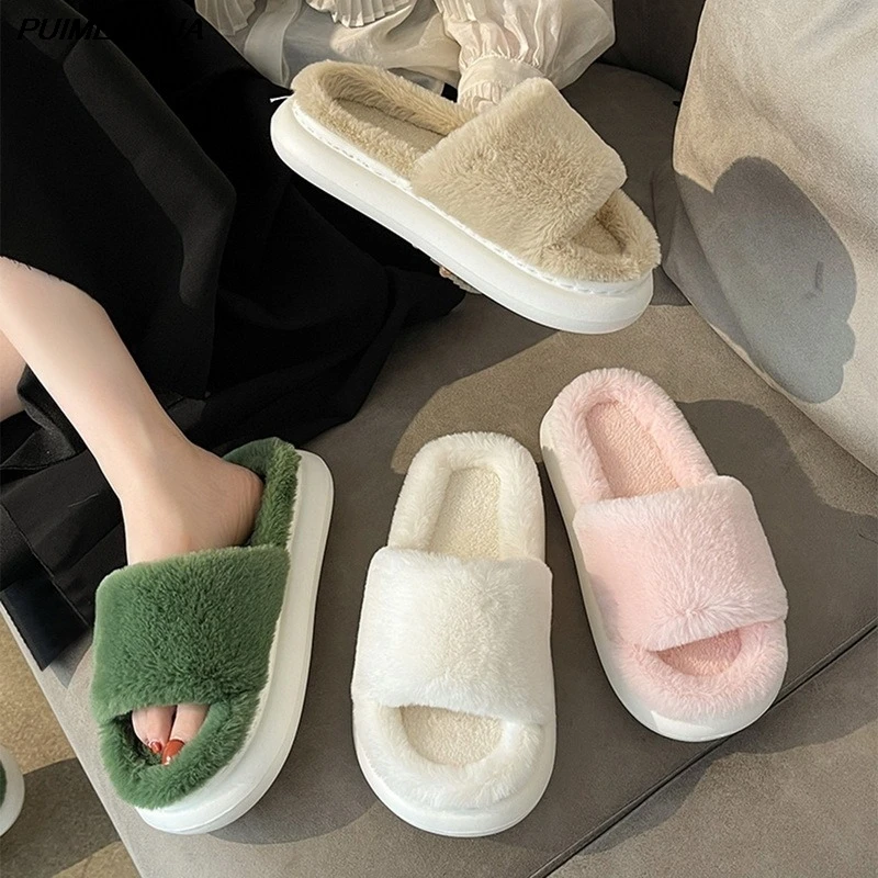 Зимние женские тапочки с толстым дном, меховые тапочки для дома, мя...