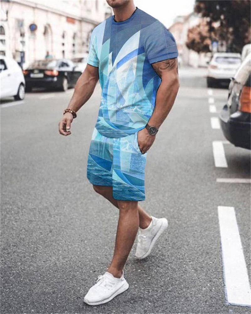 Мужская спортивная одежда с 3D принтом шорты с коротким рукавом кос...
