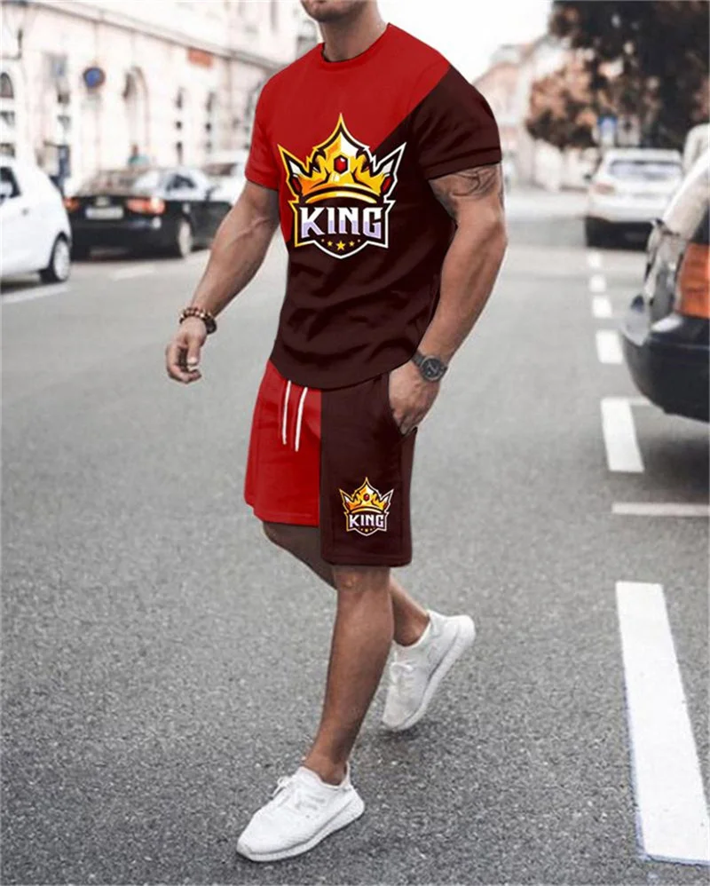 Футболка и шорты мужские и женские, градиентная строчка с 3d-короно...