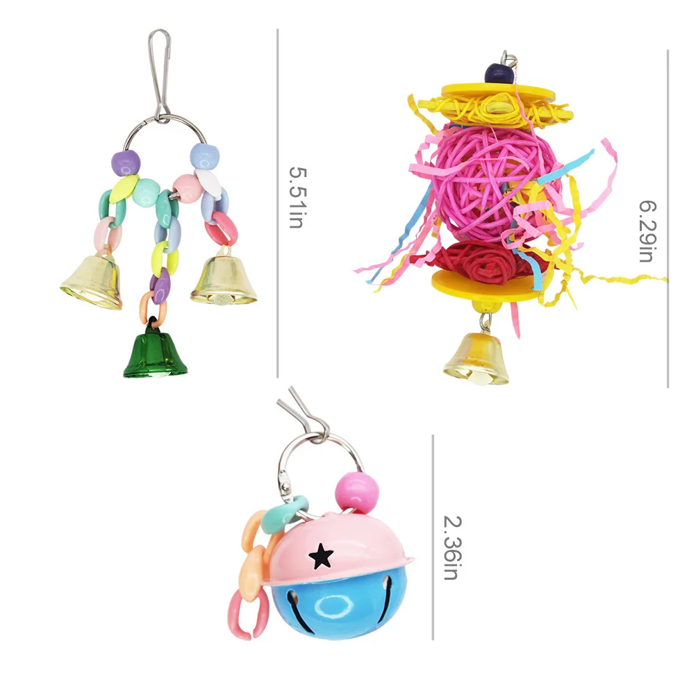 То, что вы получаете: посылка включает в себя 10 штук различных видов птиц развлекательных игрушек для удовлетворения ваших различных потребностей для птиц попугаев, идеальный размер для parrotlets, parakeets, cockatils, lovebirds и т. д. Многофункциональная игрушка для птиц: Они предназначены для того, чтобы ноги вашей птицы отдыхали, а также обеспечивают возможности для упражнений для ваших птиц, чтобы сохранить здоровье и форму. Обеспечивает вашей маленькой птице идеальное место для качания, жевания и подъема. Простота установки: все аксессуары для клетки паракета поставляются с активным крючком, который просто крепится к верхней части клетки для домашних животных для легкой установки.