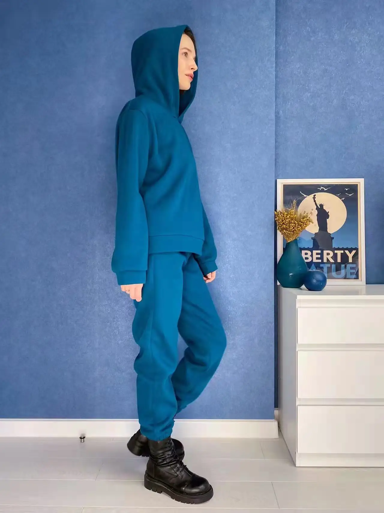 костюм тёплый, но на ветру продувает, выглядит классно, верх оверсайз, штаники сели как надо. пошито аккуратно, без запаха. Минус после двух одеваний появляются катышки, как от худи на штанах так и между ног. продавца рекомендую, ответственный.