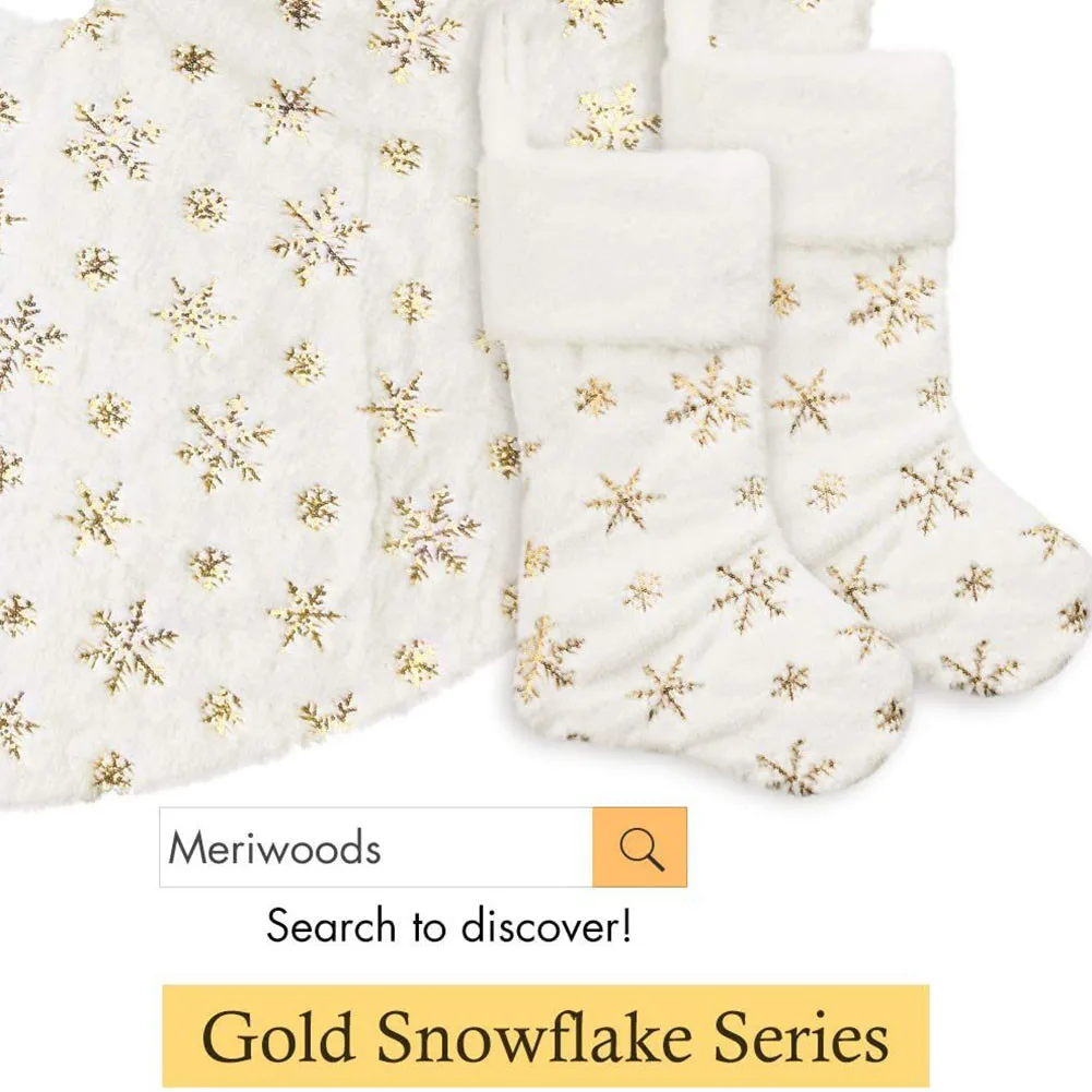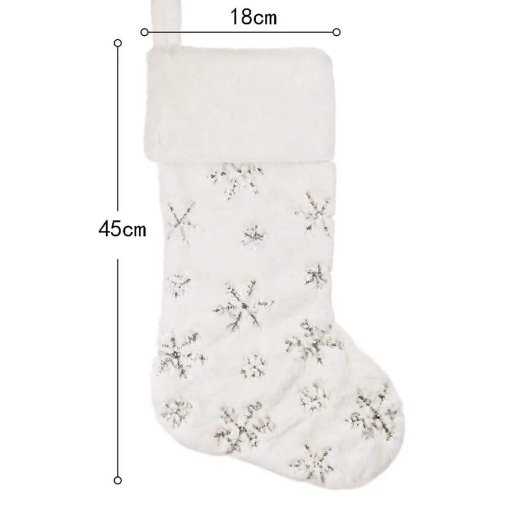 Белые рождественские чулки, яркий подарок, сумка для конфет, украшение для дома, золотой, серебряный, снежинка, вышитый Носок, украшения для рождественской елки