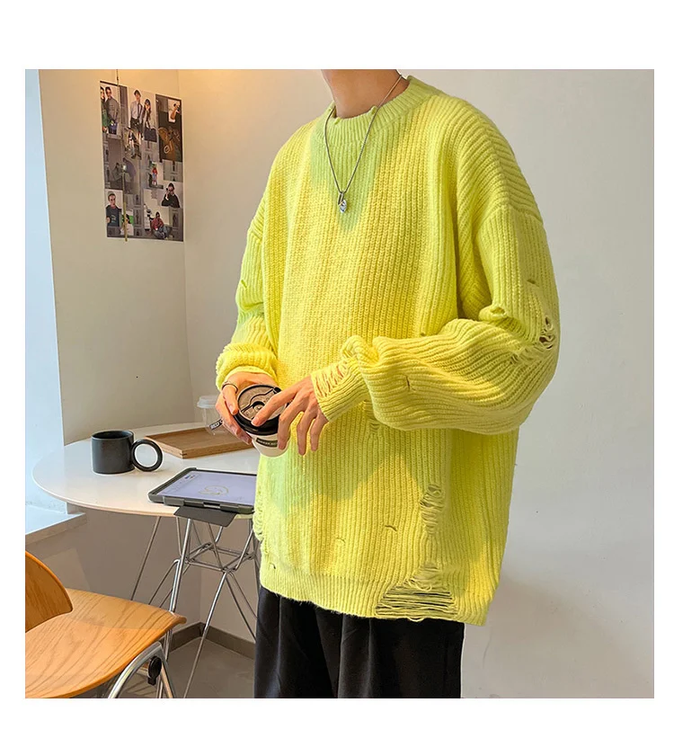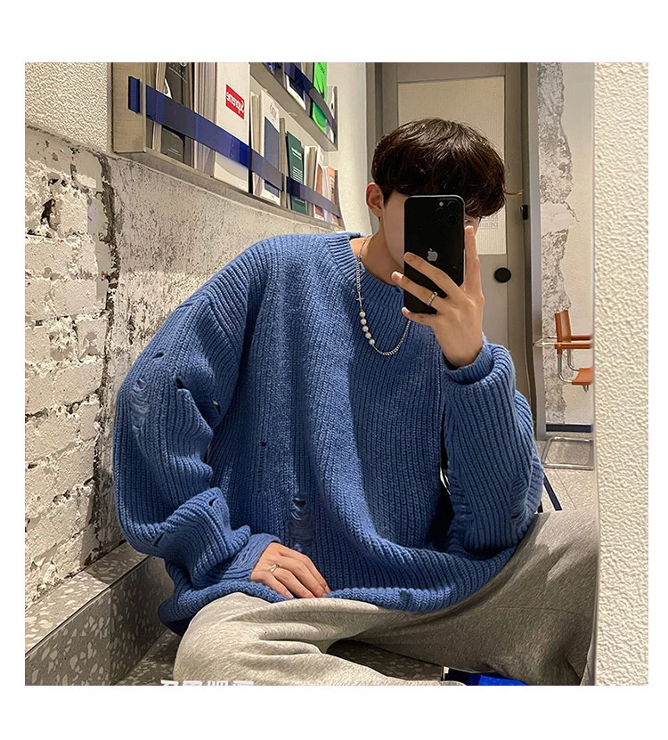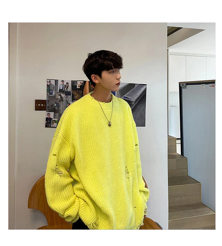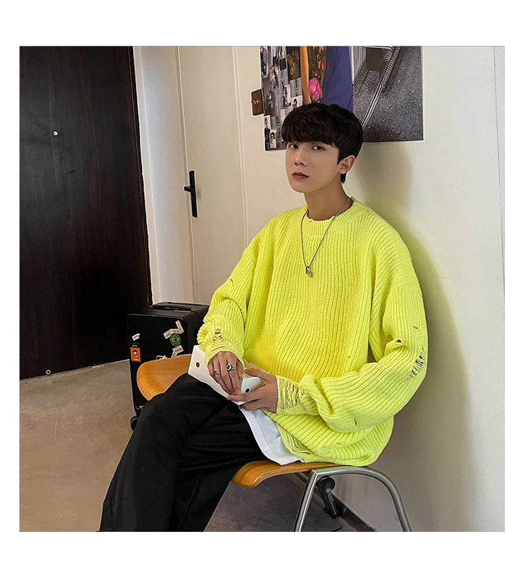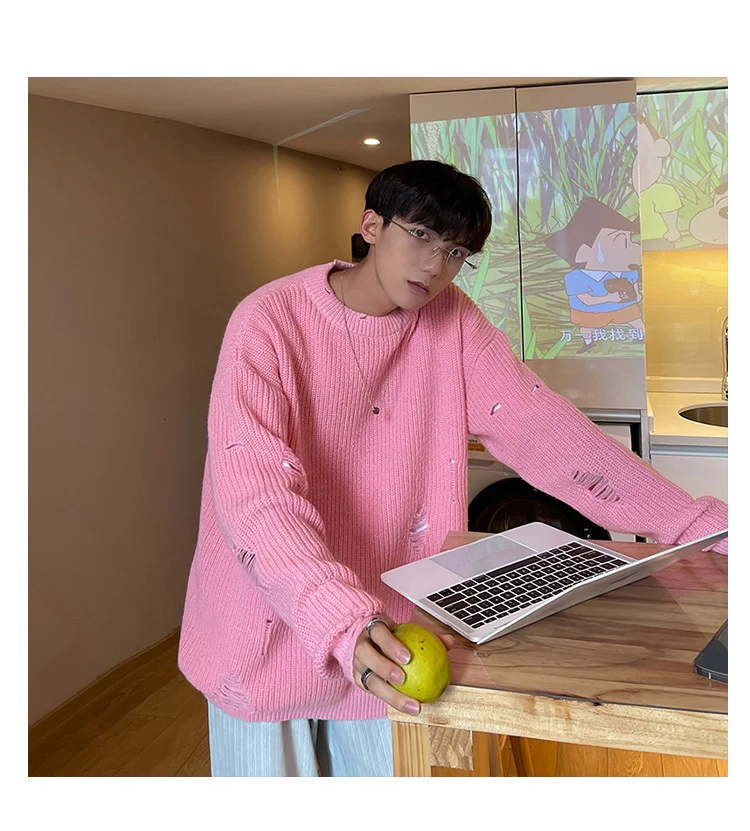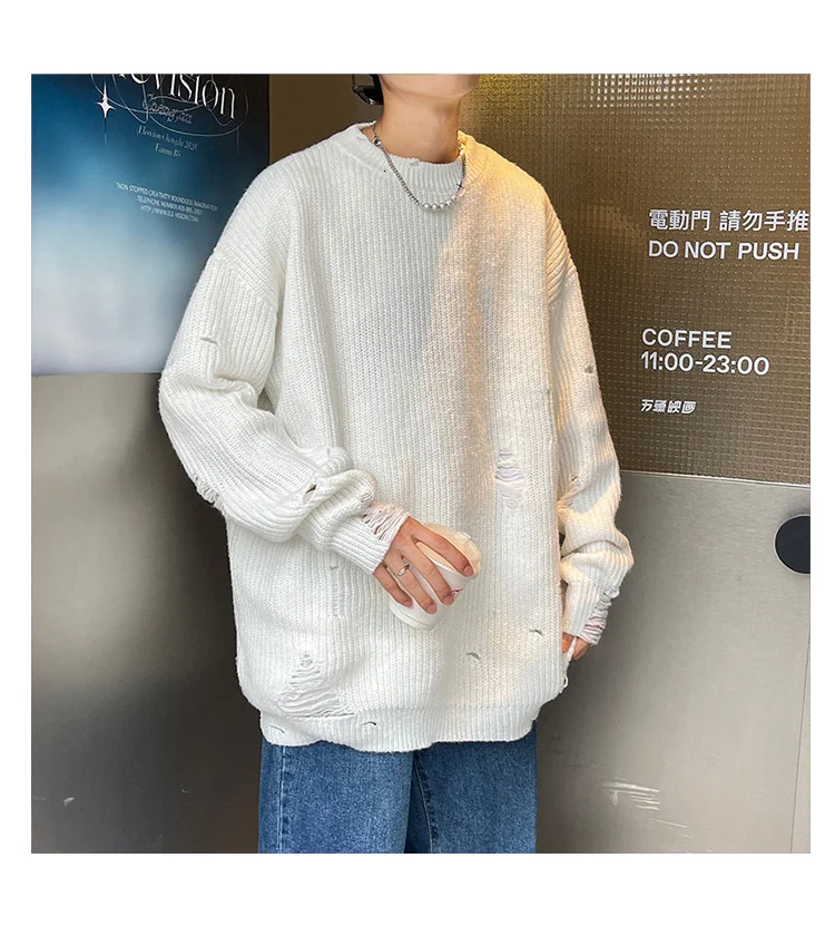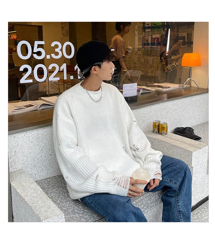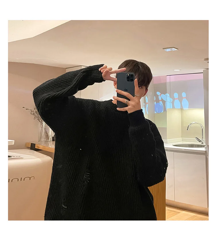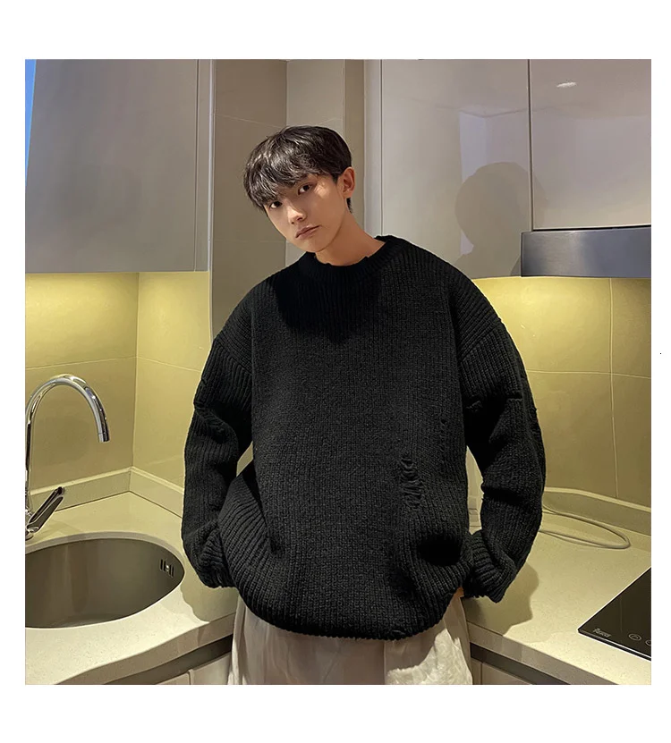 Мужские вязаные свитера оверсайз Privathinker, однотонные винтажные рваные свитера в Корейском стиле Harajuku, трикотажная одежда