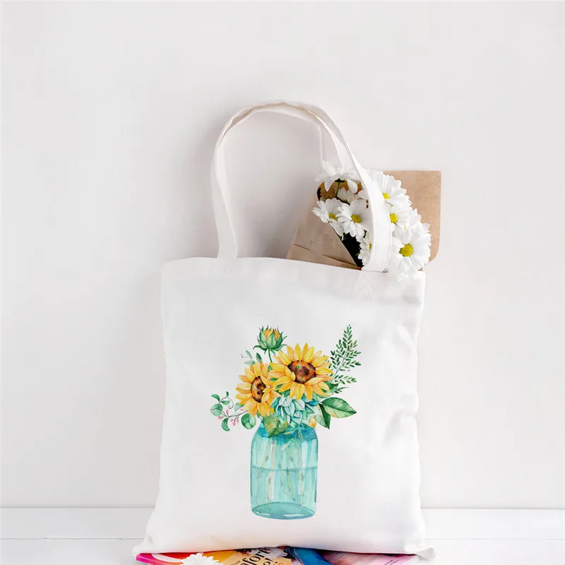 Холщовая сумка-шоппер на ремне для женщин, пляжный саквояж с цветочным принтом, Женский дорожный тоут, вместительная дамская сумочка для покупок