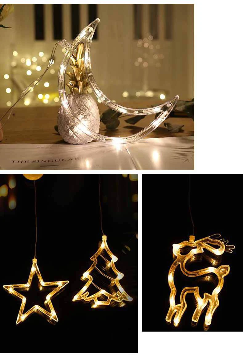 Светодиодный ная рождественсветильник люстра на присоске, креативное Рождественское украшение, осветительная цепочка с цветным свесветильник