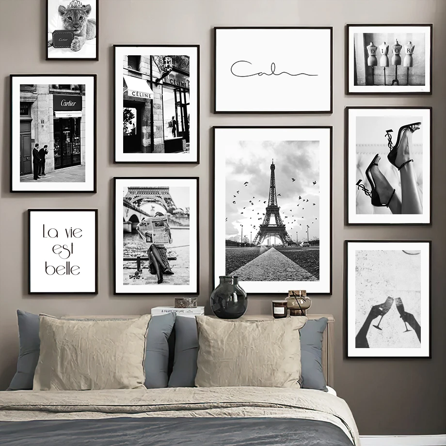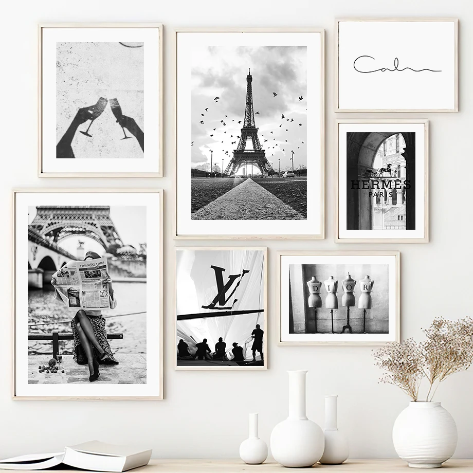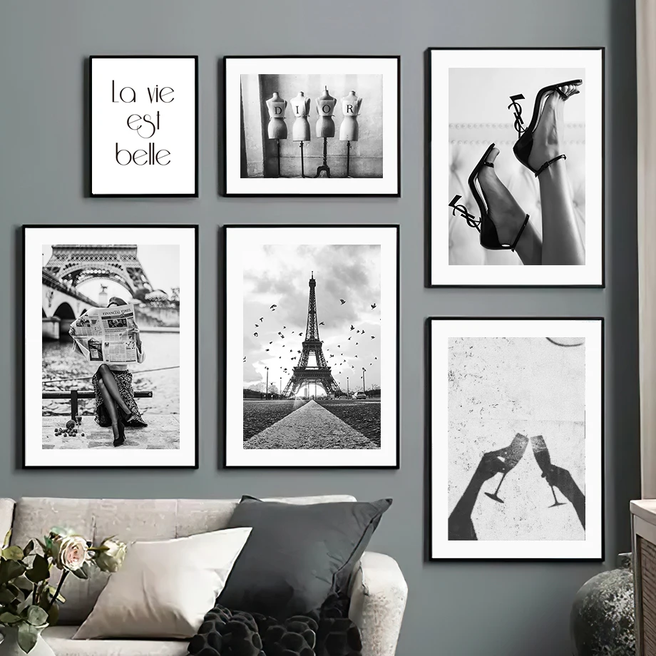 Модные постеры и принты в скандинавском стиле Город Парижа на высоком каблуке для девушек, художественные настенные картины на холсте, черные и белые картины для гостиной