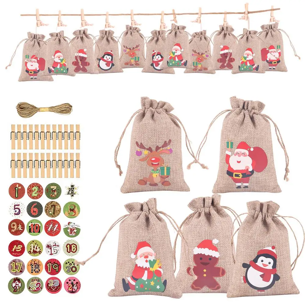 Набор подарочных пакетов с календарем и вентом, 24 шт.компл., сделай сам, Рождественский календарь, Санта-Клаус, Рождественская кукла, рождественский подарок для детей