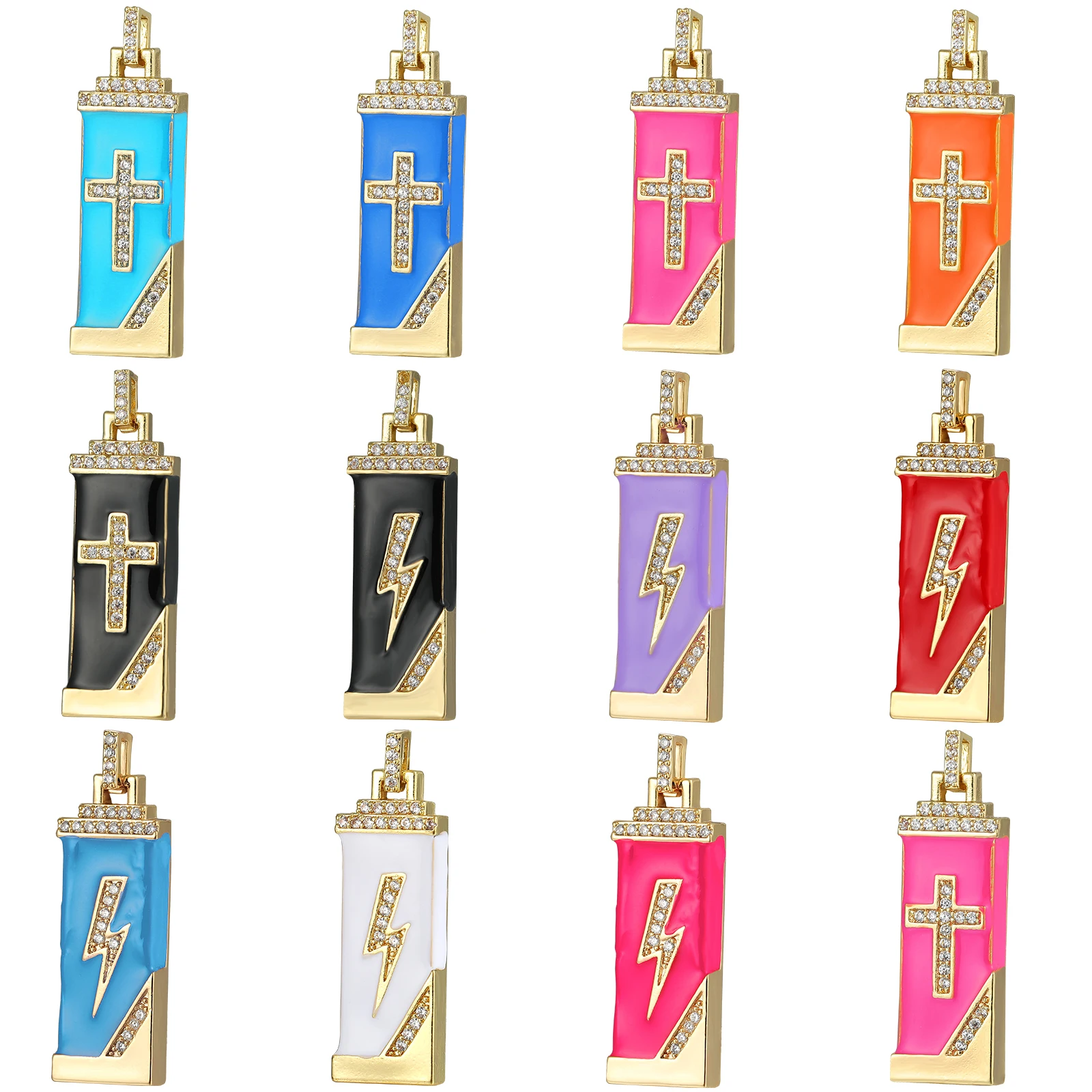 Juya ручной работы кулон воротник ювелирных изделий Кубического Циркония Христианский крест молния Радуга Эмаль полосы амулеты поставки