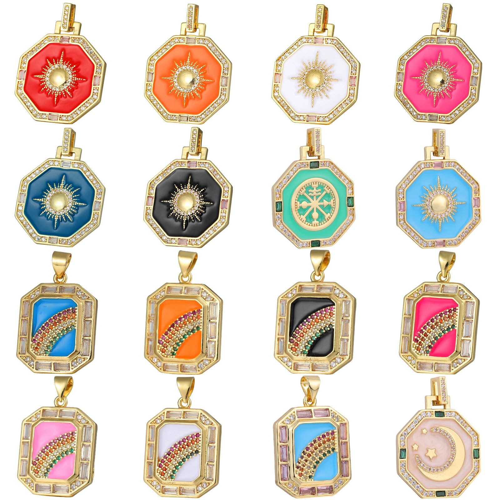 Juya ручной работы кулон воротник ювелирных изделий из Кубического Циркония Христианский крест молния Радуга Эмаль полосы талисманы поставки