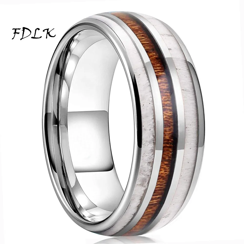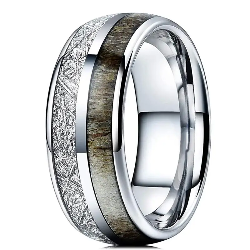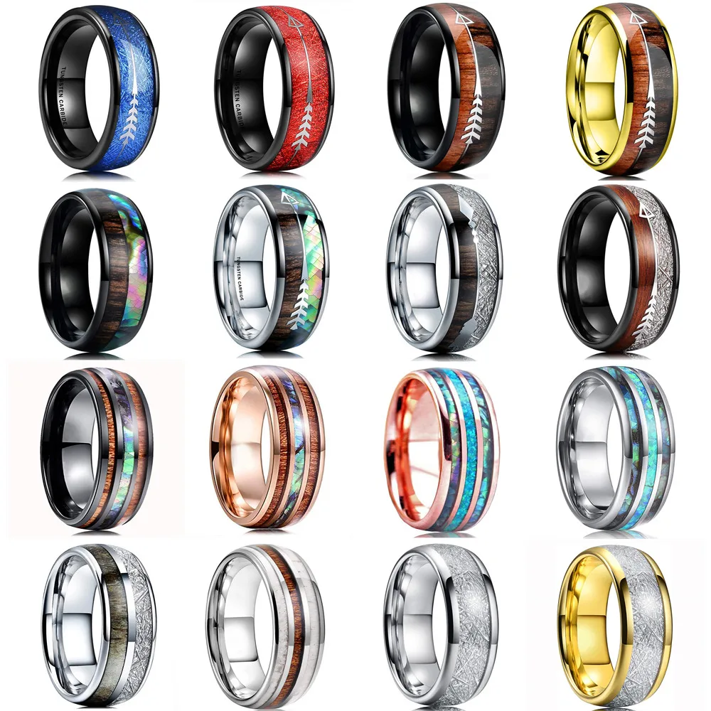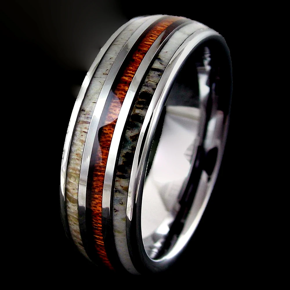 8 мм Для Мужчин's Кольца из нержавейки натуральный Радужный Галиотис оболочки КоА деревянный декор оленьи рога стрелка Серебряное кольцо для Для мужчин обручальное кольцо